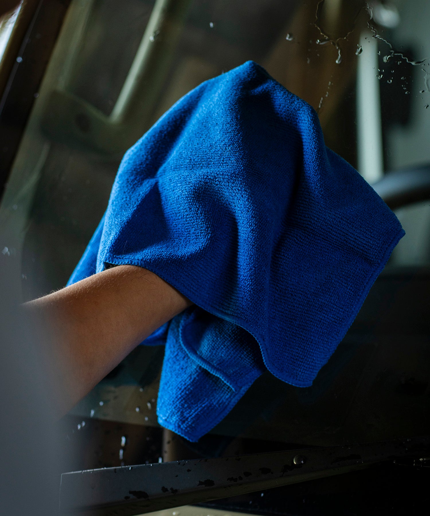 無骨なカラーリングのマイクロファイバークロスMサイズ5枚セット。無骨な落ち着いたカラ―なので車内に置いておいても目立ちません。洗車後のボディ・ガラスの拭き上げ、拭き取りに最適です。