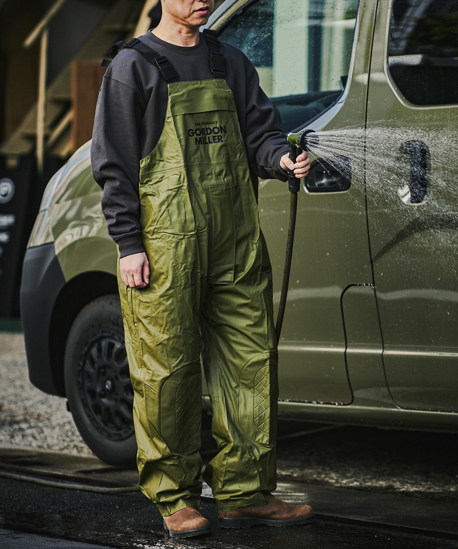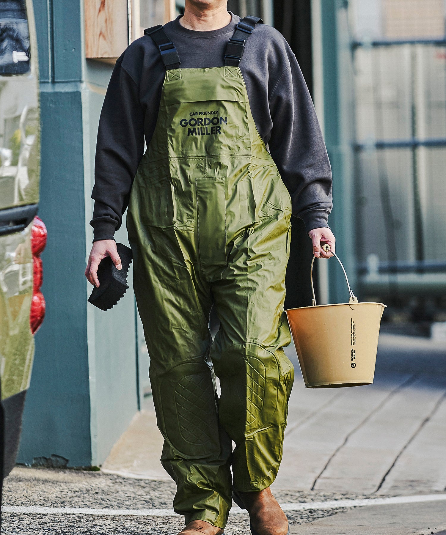 透湿防水素材であるPVCを採用した洗車や掃除や釣りなどにピッタリなサロペットです。 防水性がありながら伸縮性があり、作業時に非常に動きやすい作りになっております。胸部には、止水ファスナー付きのポケットがありますので、濡らしたくないスマートフォンなども安心して収納出来ます。また、全面腰の辺りにはループがございますので、タオルなどを通して引っ掛ける事も可能です。前立により着用時でも前を開く事が出来ますので、急な尿意などにも安心です。防水性が高く、数多くの機能性も備えながらもファッション性の高いサロペットです。サイズはワンサイズ、ユニセックスでご愛用頂けます。サロペットはフランス語になり、英語のオーバーオールと同義語となります。