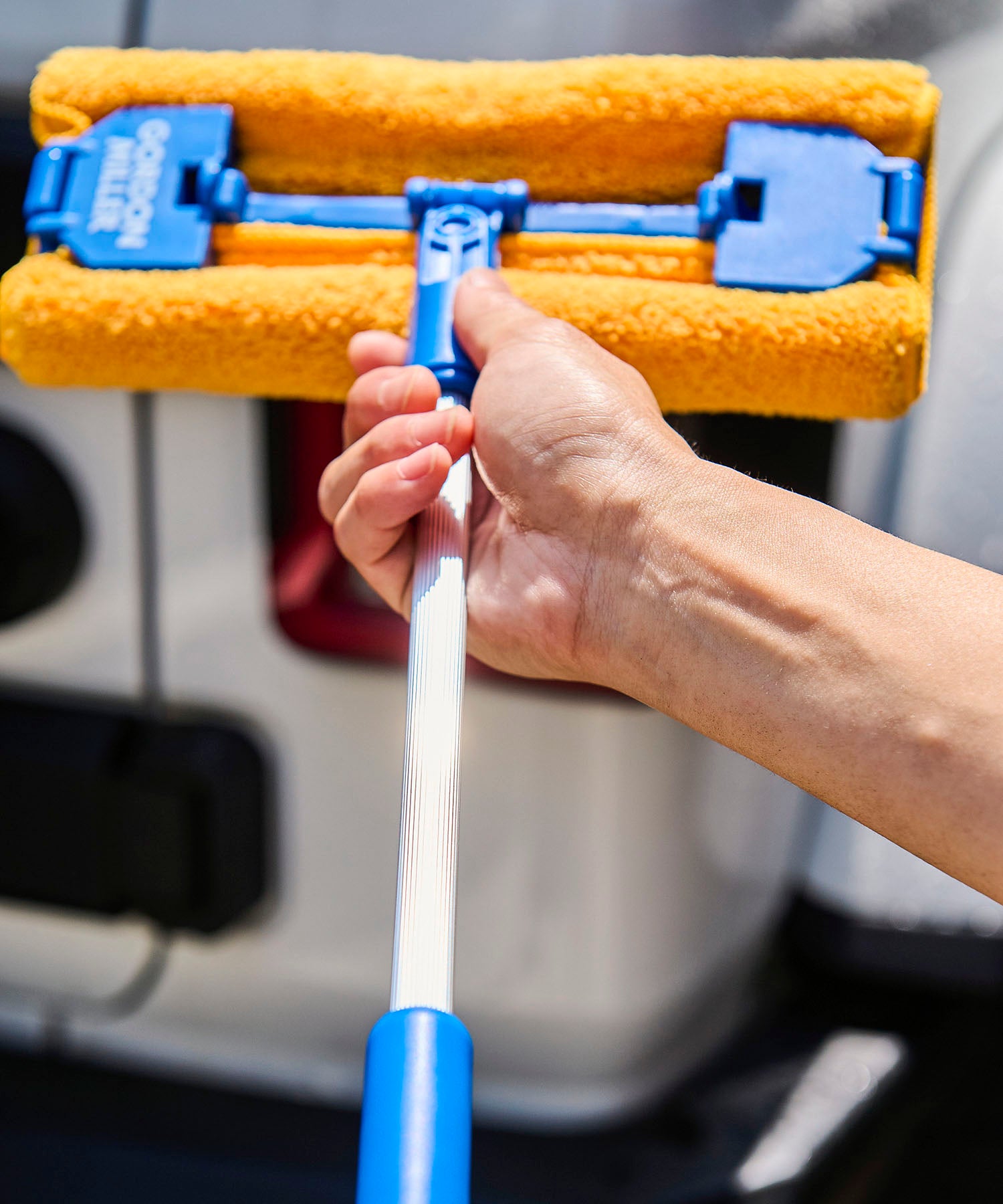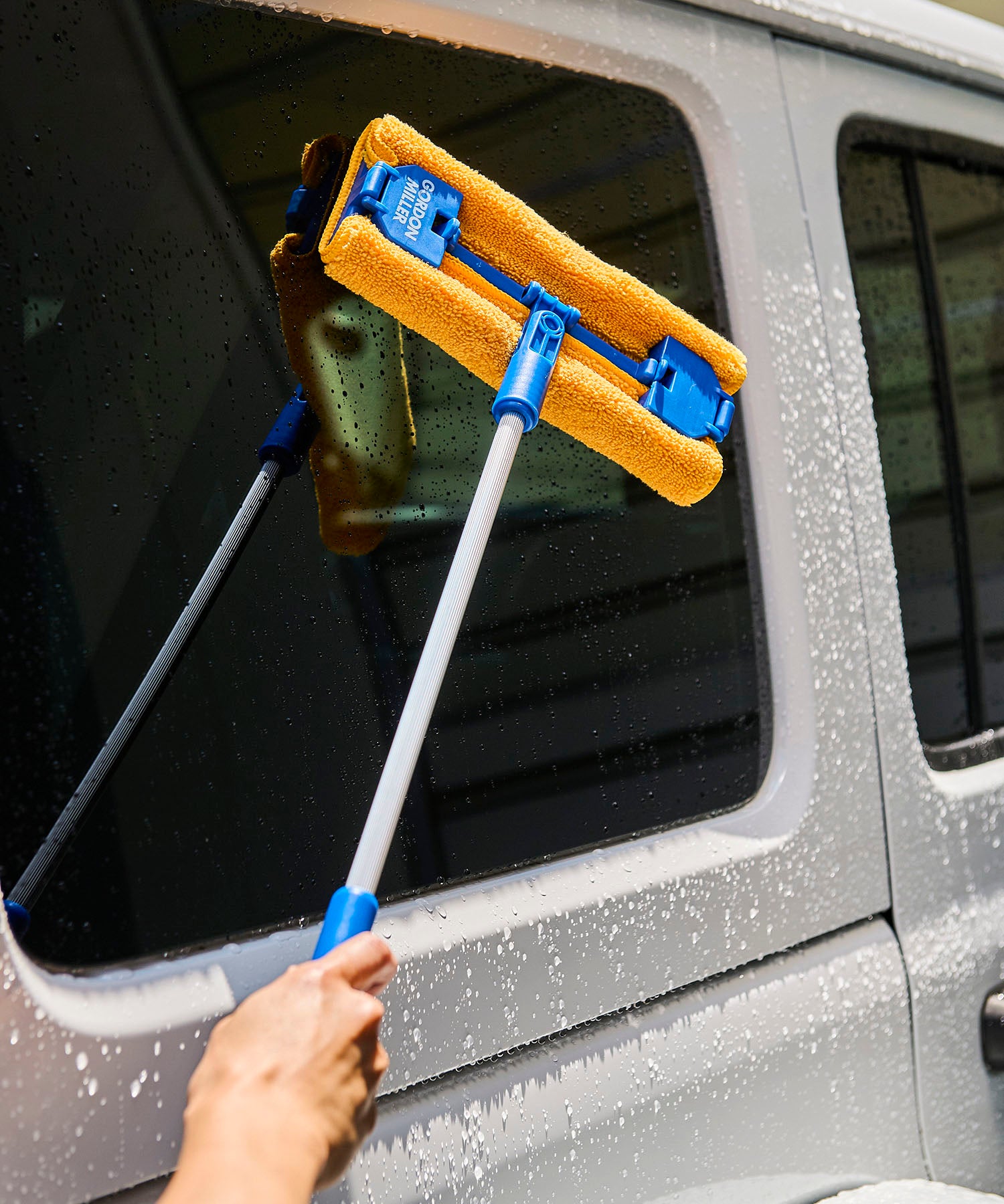 洗車やお家の掃除などシーンに合わせて使い分けできる長短2種類の毛足を持つリバーシブルタクロス採用。全長60~90cmで伸縮自在なため高所や足元も楽な姿勢で作業出来ます。ヘッドを使いやすい角度に調整できるため、力がしっかり伝わります。