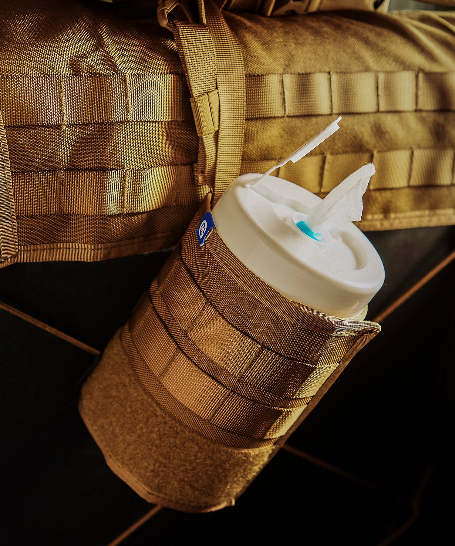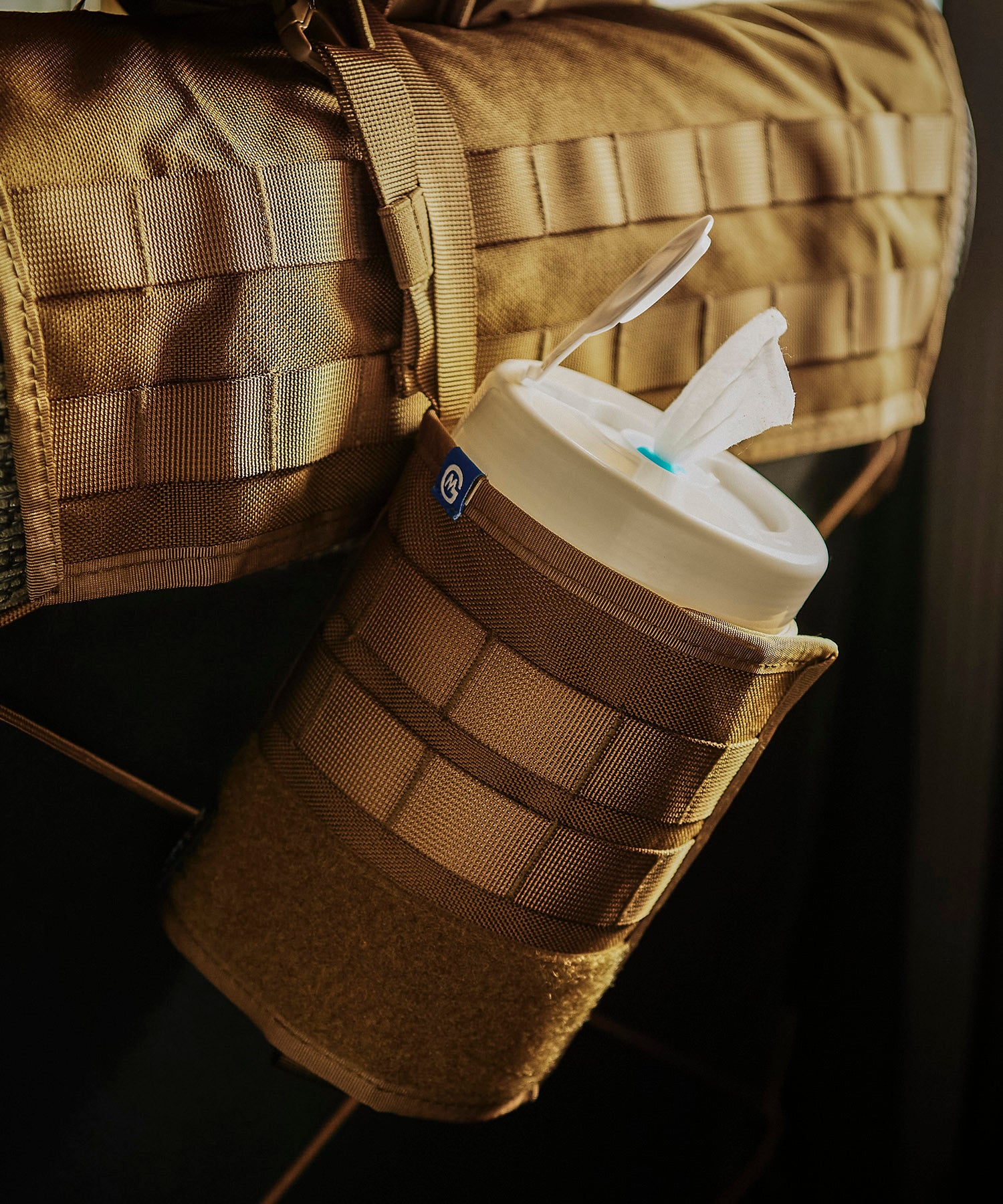 モールシステムに対応したミリタリー風のウェットティッシュカバーです。素材は、摩擦や引き裂き、擦り切れに強いCORDURA®FABRIC 1000を採用。各部材や縫製糸に至るまで生地と同色に統一することで、高級感のある仕上がりに。本体と底面の底面面テープを使うことでサイズ調節ができるため、幅広いサイズの市販のウェットティッシュに対応。ベルトを用い、お好みの場所に引っ掛けて使うことが出来ます。車内で単体使いの場合は、ヘッドレストのシャフト部分に引っかけるだけでおしゃれに取り付けできます。防水性、防汚性に優れており雨や汚れに強く、また汎用性もあるため様々な車種に対応可能。他には、同シリーズのカーシートカバーやシートバックオーガナイザーのモールシステムに取り付けたり、お手持ちのモールシステムにも装着できるおすすめの便利グッズです。同シリーズの別売り商品と連結して使用することも可能です。