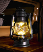電池式のLEDランタンです。本体前面のつまみを回すことで、点灯・消灯・明度の調整ができます。15灯のLEDを搭載し、温かみのある光は明るさを無段階に調光できます。 火を使わないため、キャンプシーンではもちろん、車中やベッドサイドのインテリアとしてもおすすめです。専用の収納袋付きで持ち運びもできます。 クラシックなスタイルのオイルランプのようなデザイン。キャンプやガレージシーンの雰囲気を醸し出します。