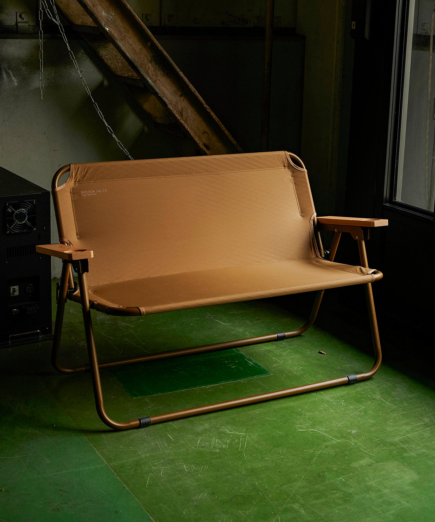 米・Dimension–Polyant社製の特殊マテリアル「X–PAC / エックスパック」素材を贅沢に使用したベンチ。 一般的なベンチと違い、強度・軽さ・防水性を兼ね備えた、主にヨットのセイルクロスとして使われるX–PACなら生地の伸びがほぼ無く、長く愛用することが可能。 一般的なベンチより一回り大きく、ゆったり座ることが出来るオリジナルのベンチは、質感が良く丈夫なニレ材のアームレストは幅が広く、カップホルダー付き。背面のモールシステムは、ポケット2個、ベルクロと機能満載。 モールシステムを使用してTACTICAL PACのティッシュケースやドリンクケースなどを取り付け可能。またベルクロ部分には別売りのワッペンなどを取り付けることも可能。 チェアと座面の高さを同じにしているので、キャンプサイトの統一感も演出する。