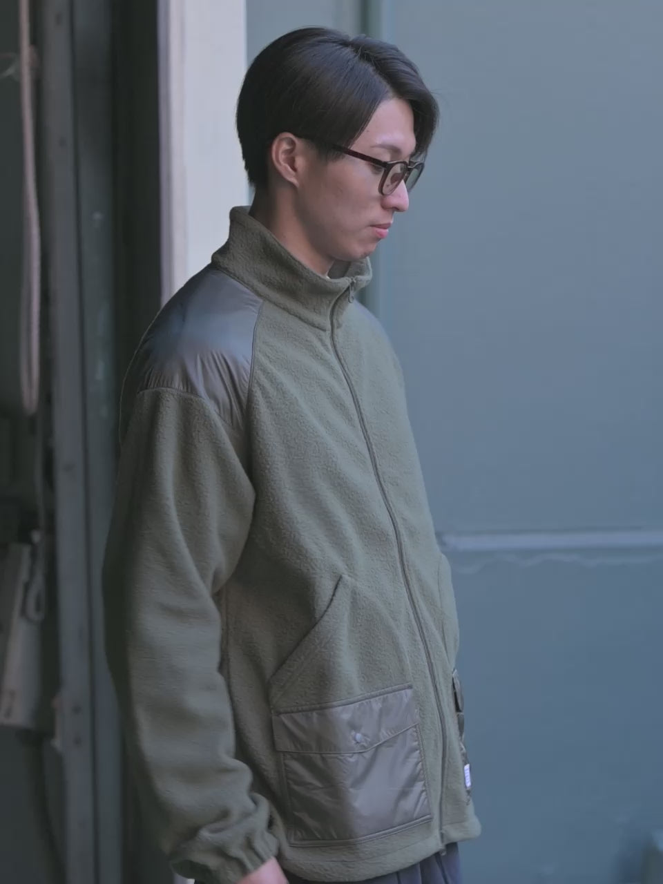TORAYの高機能フリース「KARUISHI(カルイシ)」を採用。完全2層構造で肉厚でありながら非常に軽く毛玉も出来にくいフリース素材です。USミリタリーのトレーニングウェアをデザインソースにしたZIP-UPブルゾンはマルチポケットデザインやオーバーサイズシルエットで現代的にアップデートされています。