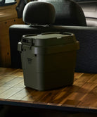 高耐久なポリプロピレン素材を採用しているため衝撃や水、汚れにも強く、耐荷重は100kgとなっているのでスツールとしても安心して座れるフタ付き収納ボックス「トランクカーゴ」。こちらの「スタッキングトランクカーゴ」は、その名の通りスタッキング(積み重ね)しやすい平らな天面が特徴。フラットな天面は天板を使用しなくともテーブルとして使いやすく、座り心地もアップ。ロック機能付きの取っ手により大容量ながら荷物の積み下ろしも簡単で、フタ部分には荷締めベルトが掛けやすい様にベルトガイドが設けられ、車載時により使いやすくなるなど機能性が向上しています。