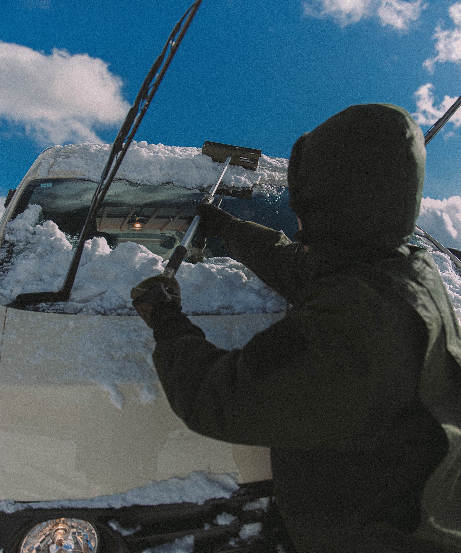 ブラシ部は柔らかい毛と先割れ仕様の硬い毛のミックスで車へのダメージを軽減しながら除雪性能も確保しています。