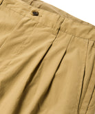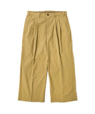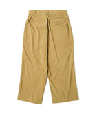 撥水加工が施された機能性を持ったポリエステル素材ながら、コットンのような表情が特徴のタイプライター生地を使用した2タックのワイドシルエットのクロップド丈パンツ。