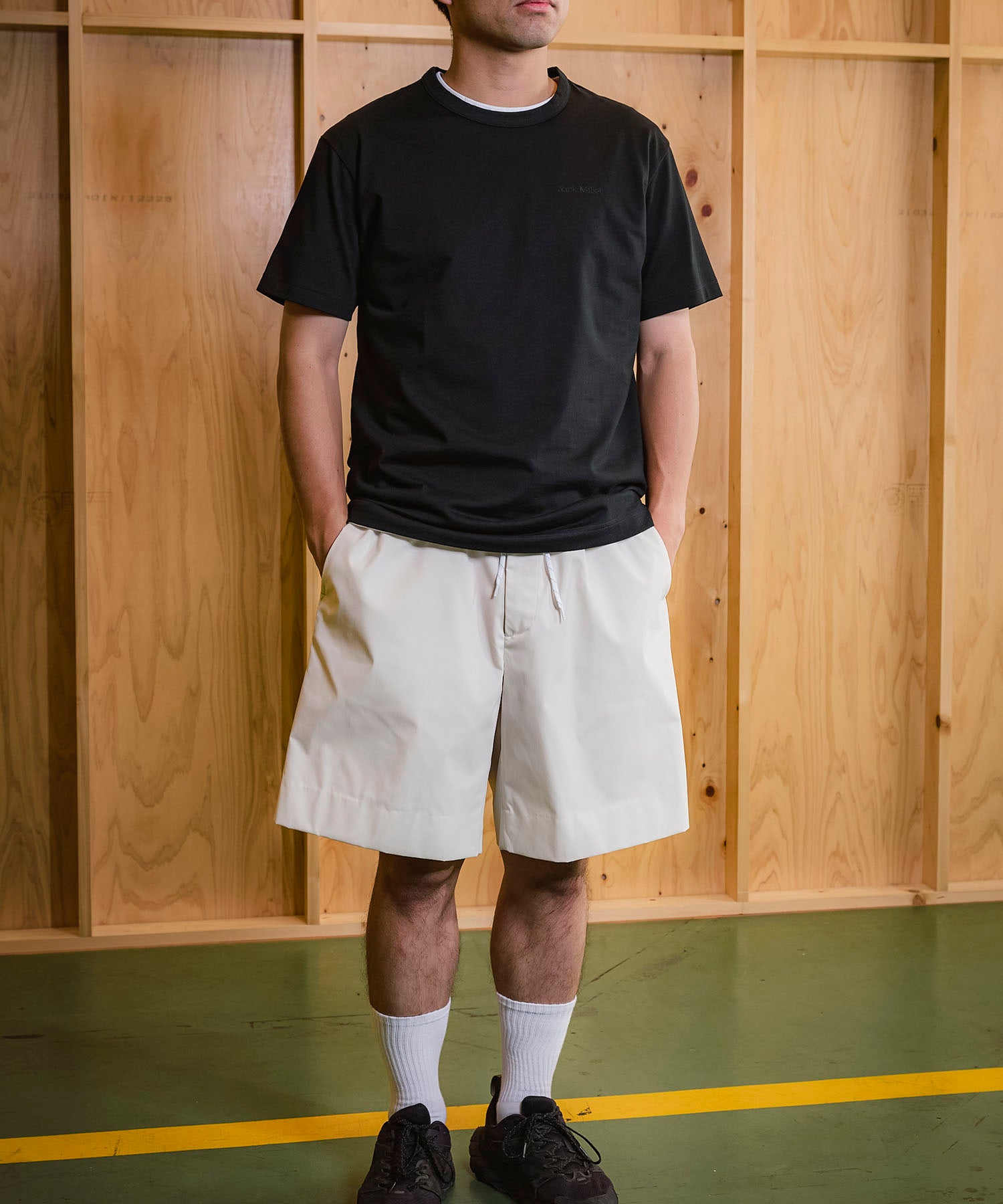 REGULAR-FITとはいえラフになりすぎないようシルエット出しにこだわり、首まわりもスッキリと抑えスタイリングがまとまる仕上がり。