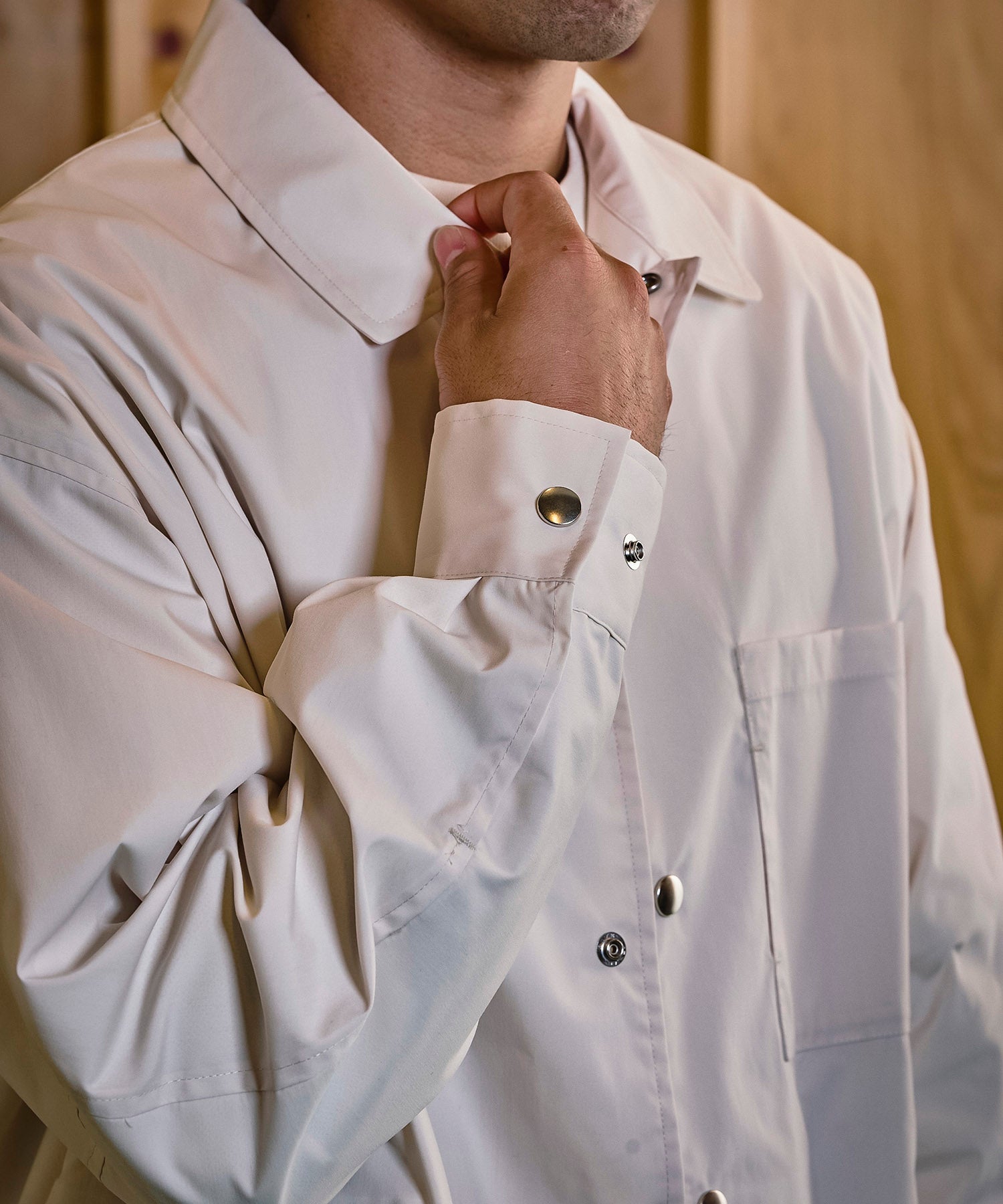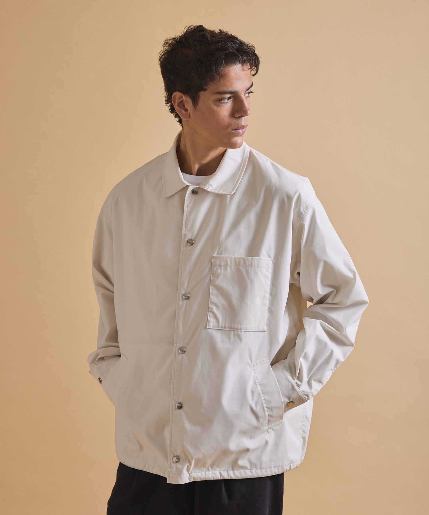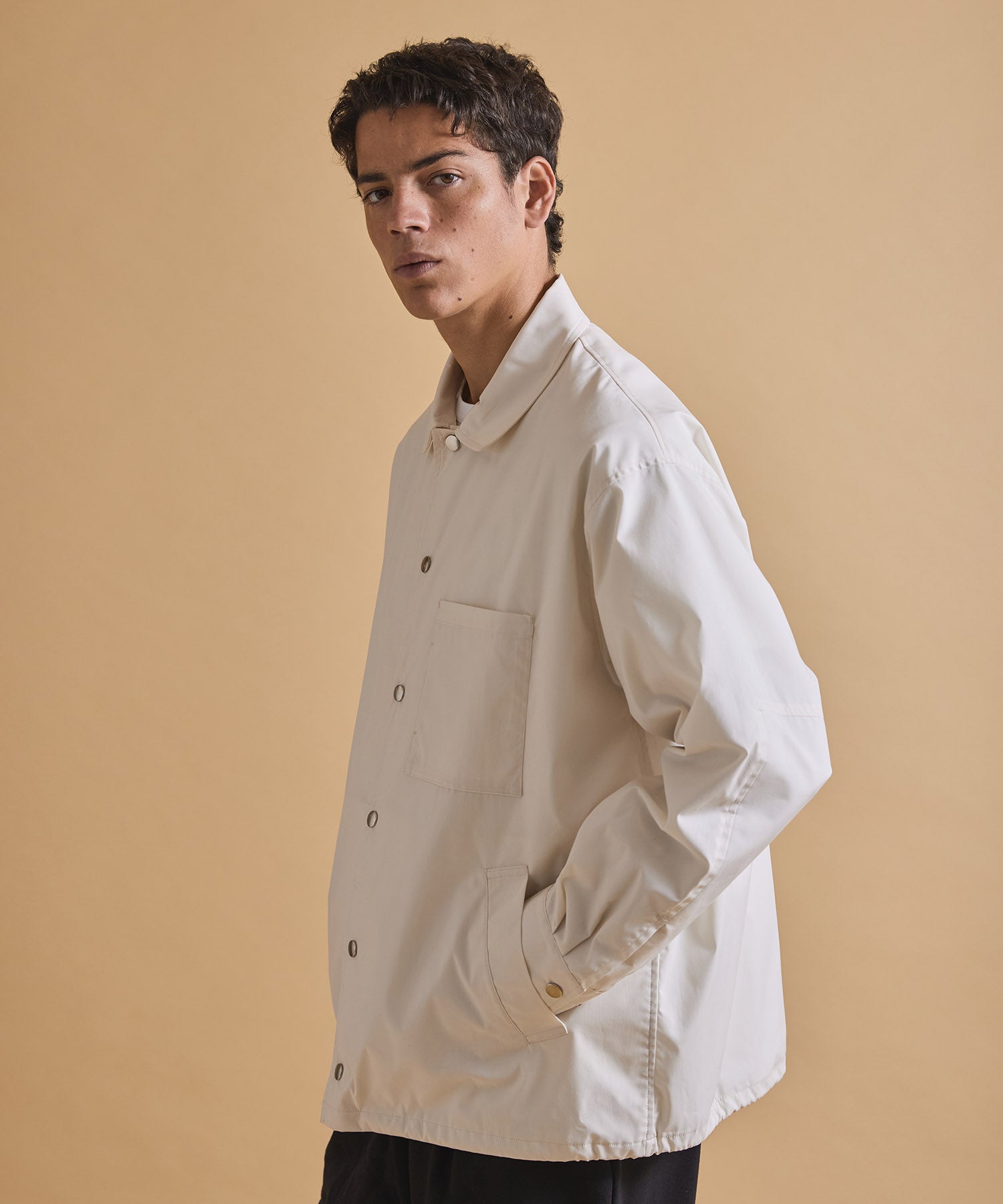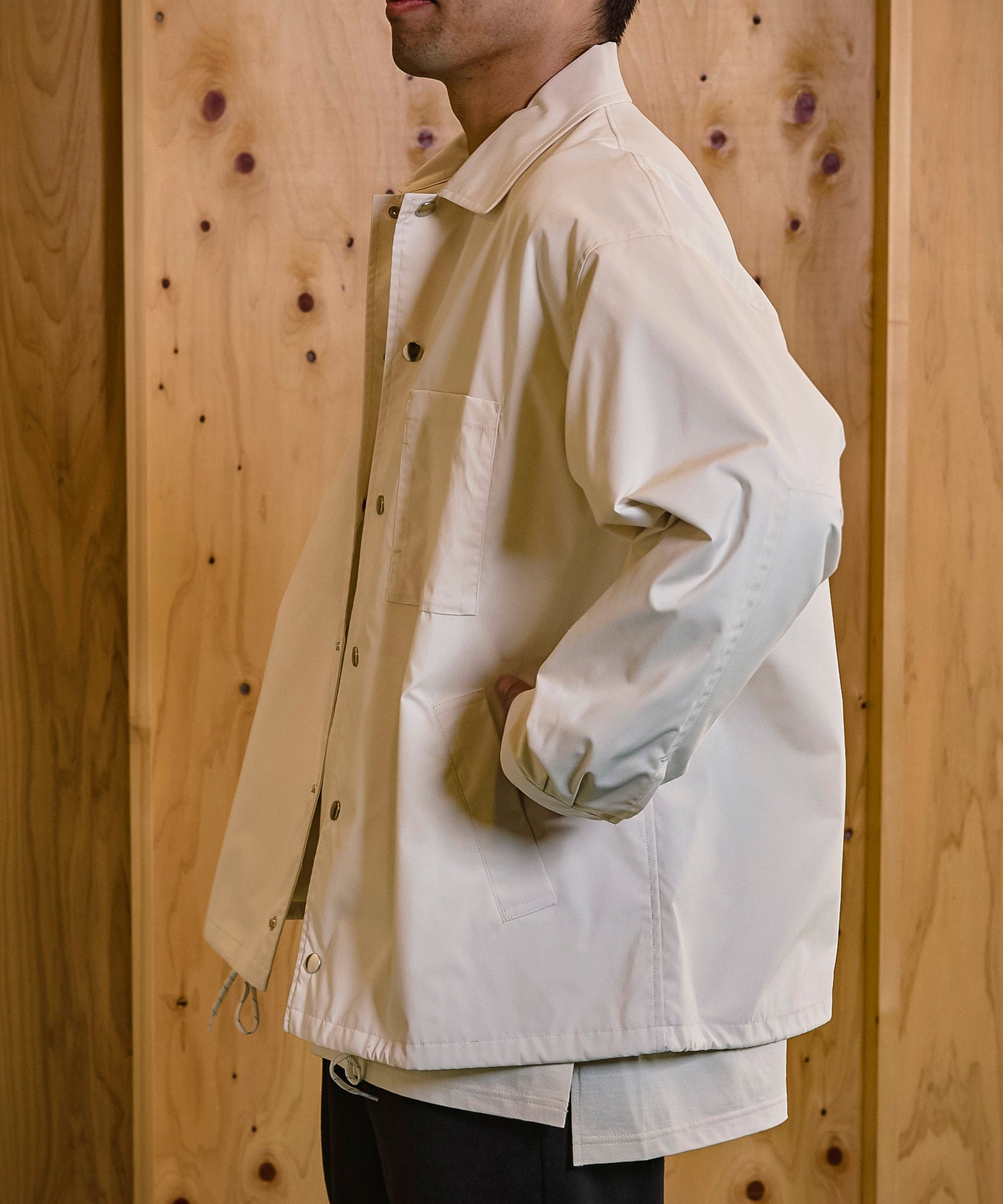 軍モノやワークウエアとしても使用されるほど、丈夫でイージーケアなウェザークロスという生地はライトウェイトでもハリコシがあり、軽やかなシルエットを出すことができます。