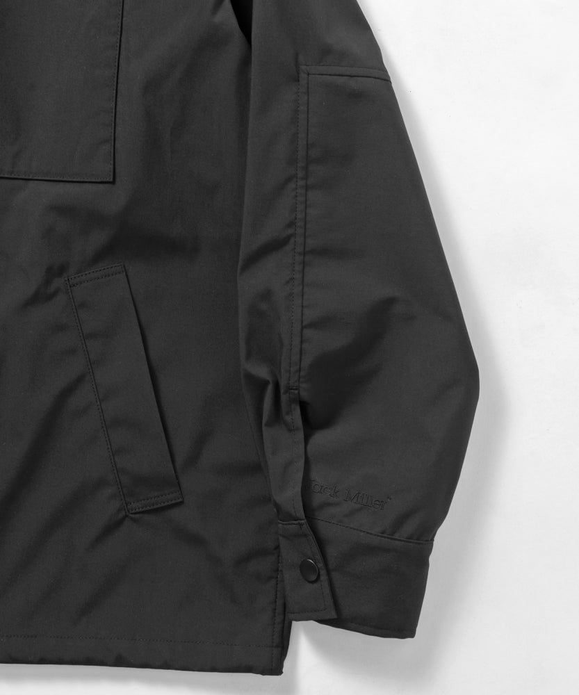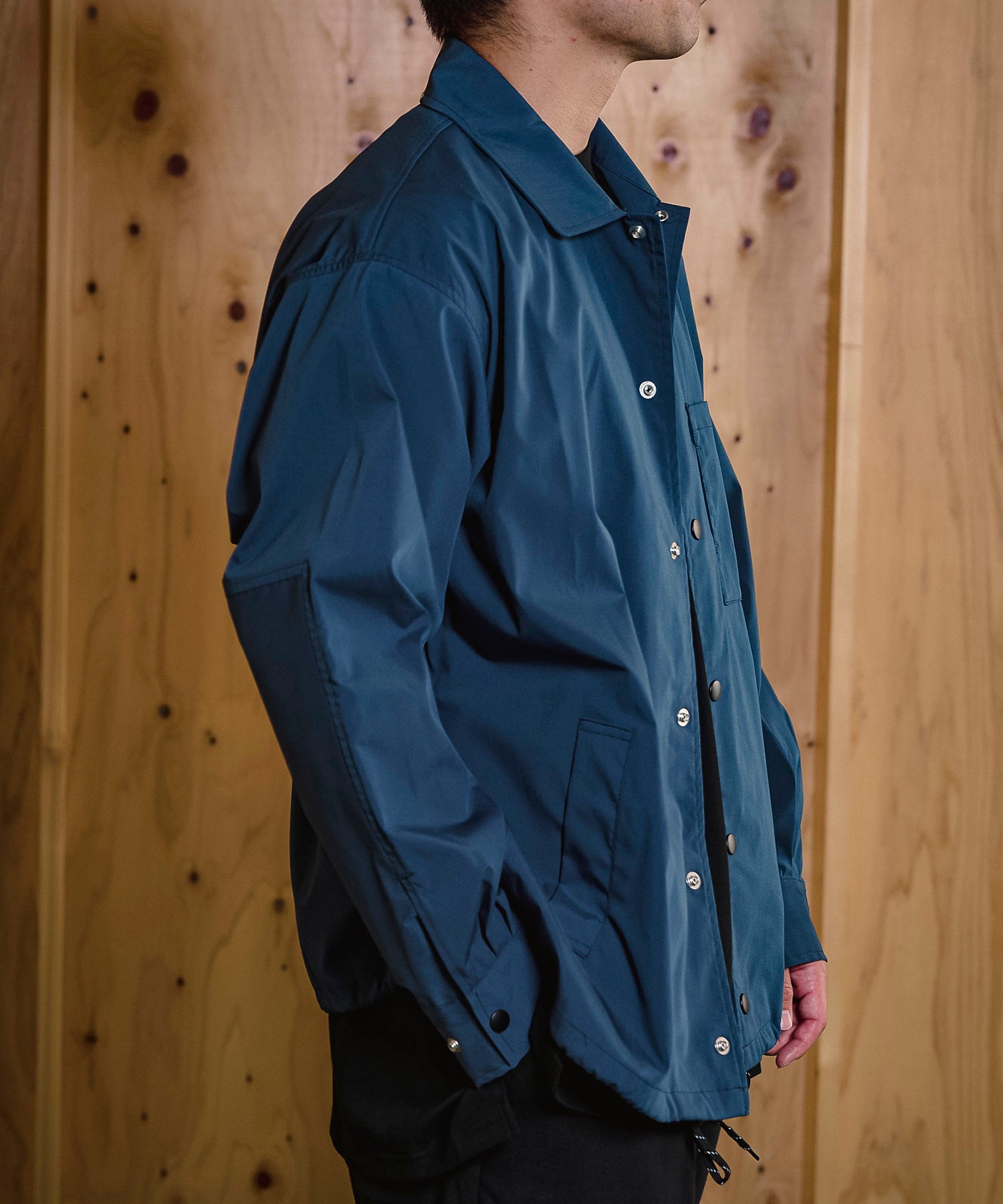 袖口から肘にかけて切り替えたエルボーパネルで耐久性が向上、左袖口に同色刺繍ロゴ、リフレクターコード、衿の後のリフレクターがデザインポイントです。