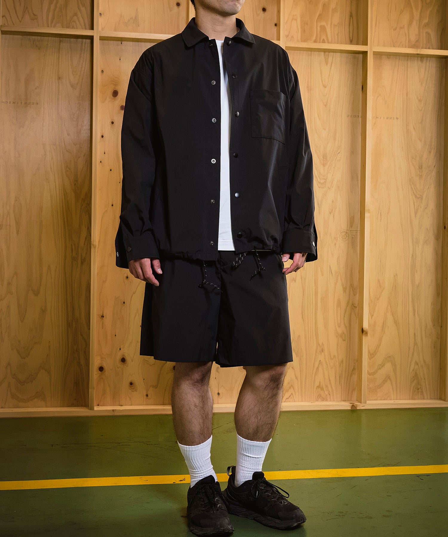 ドロストを絞ることにより着丈、シルエットの表情変化を楽しめ、ワイドショーツと同素材の為、セットアップコーデもまとまります。