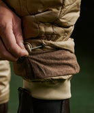 肌に当たる裏地には毛足の長い起毛素材、さらに裾にはインナーリブを付けることで裾からの冷気の侵入を防ぎより保温性を高めています。