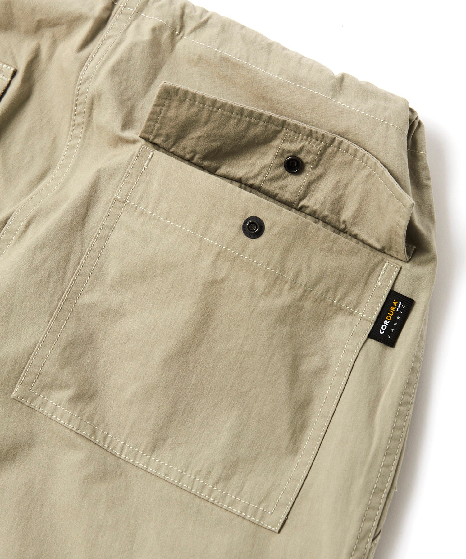 コットンとCORDURAの混紡糸を使用したウェザークロスを採用。薄手で軽量ながらハリとコシがありコットンの風合いを残しながらもCORDURAの耐久性と耐摩耗性を持ち合わせている素材で、日常使いで気兼ねなく履き込むことができます。