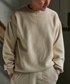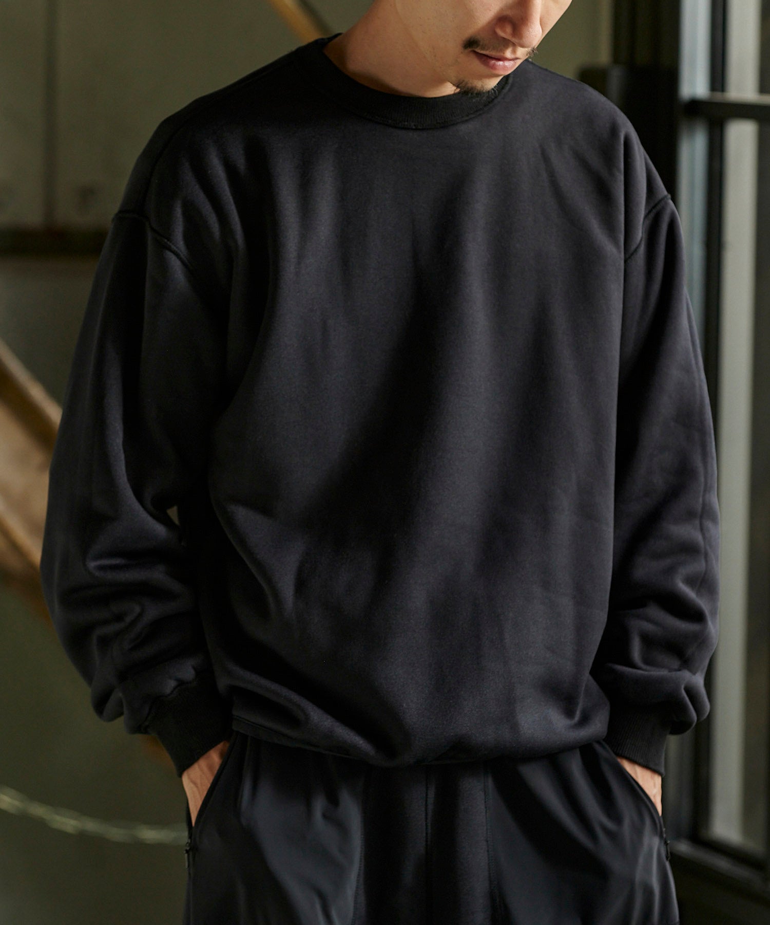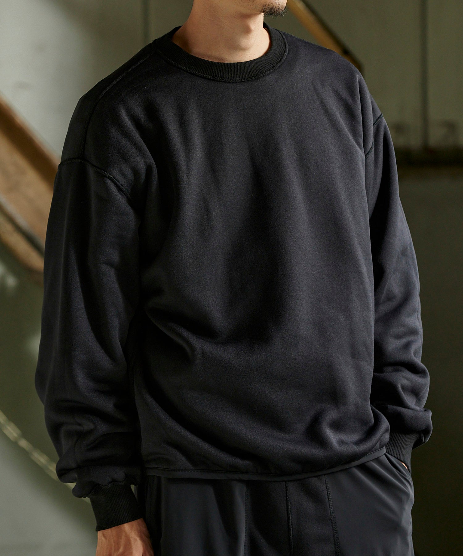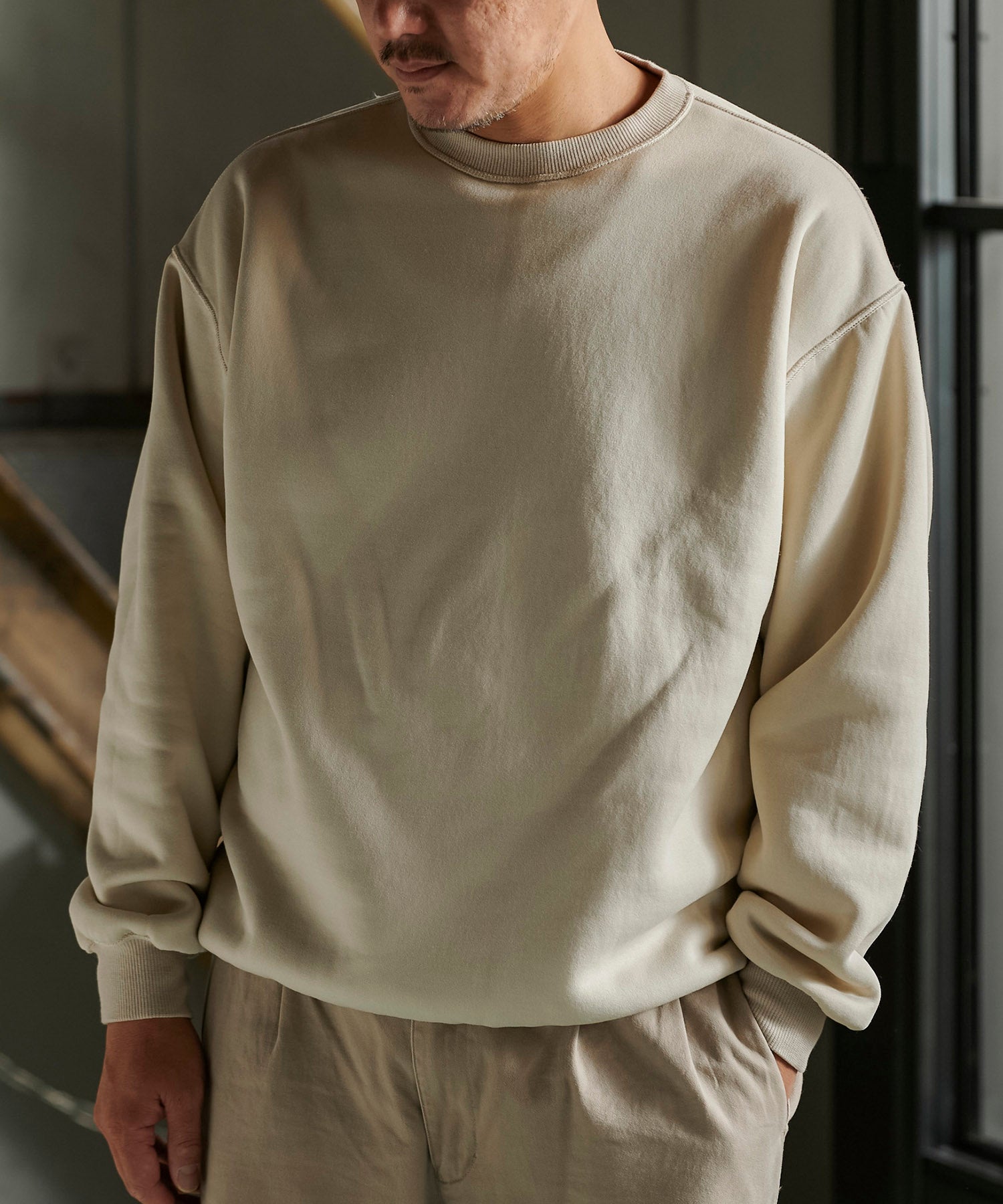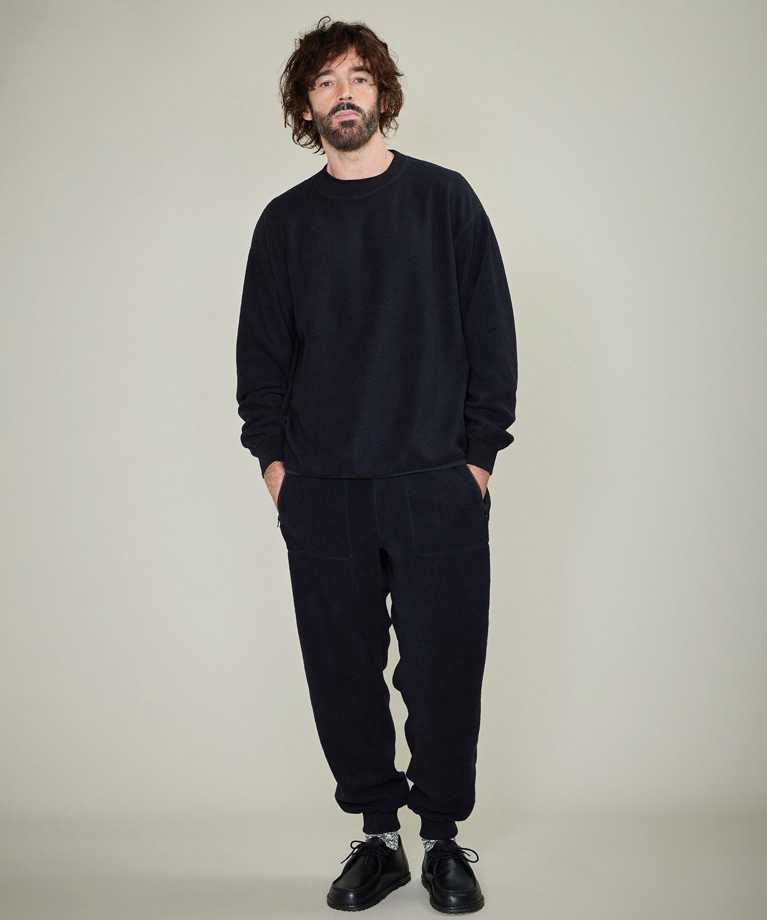 リバーシブルで着用出来るボアスウェット。程よい厚みと軽さ・柔らかさで着心地が良く、ボアが空気を含むことで暖かさを保つことが出来ます。襟元はリブ仕様でシンプルに、コットンベースなのでチクチクしないのも魅力。もう片面は天竺目のフラットなフェイス。ボアとは対照的なキレイ目でシンプルなイメージで着ていただけます。寒さが残る春先は天竺面を着用すれば冬っぽくならずに暖かさが保てるので重宝します。一枚で2役、いつものライフスタイルに、アウトドアにも最適なアイテムです。