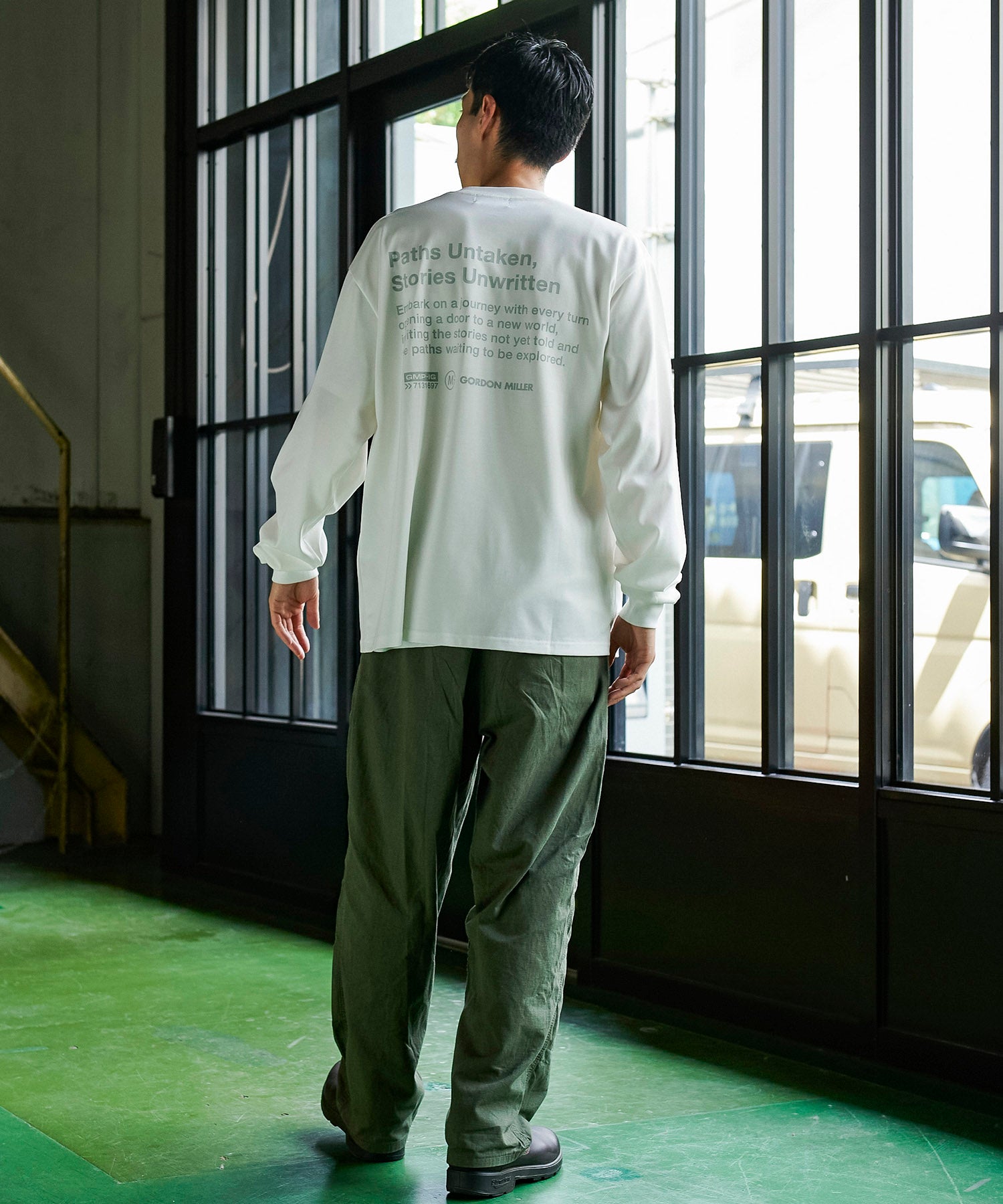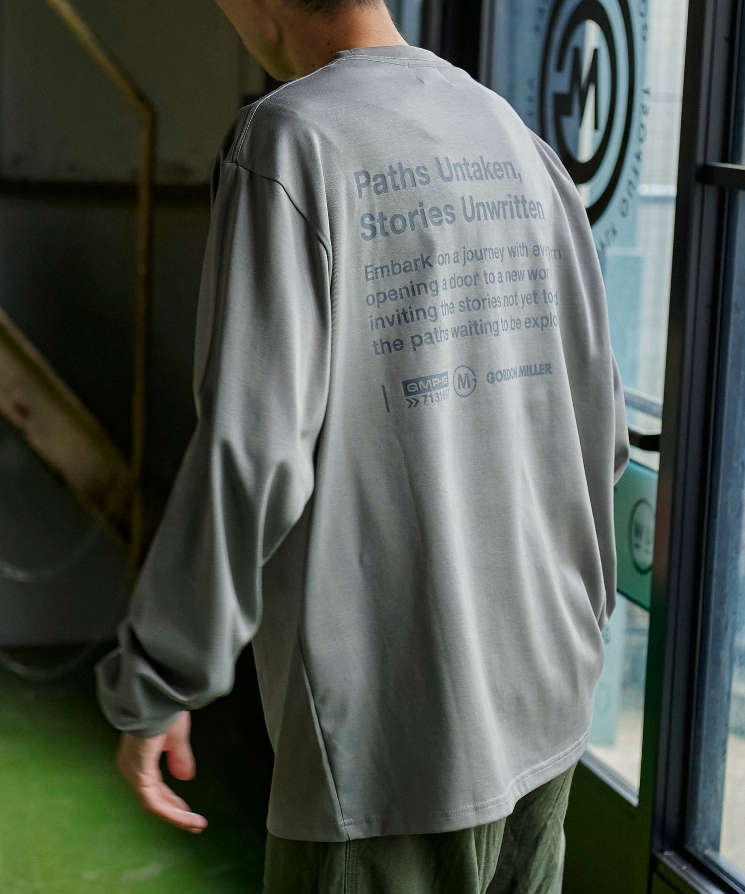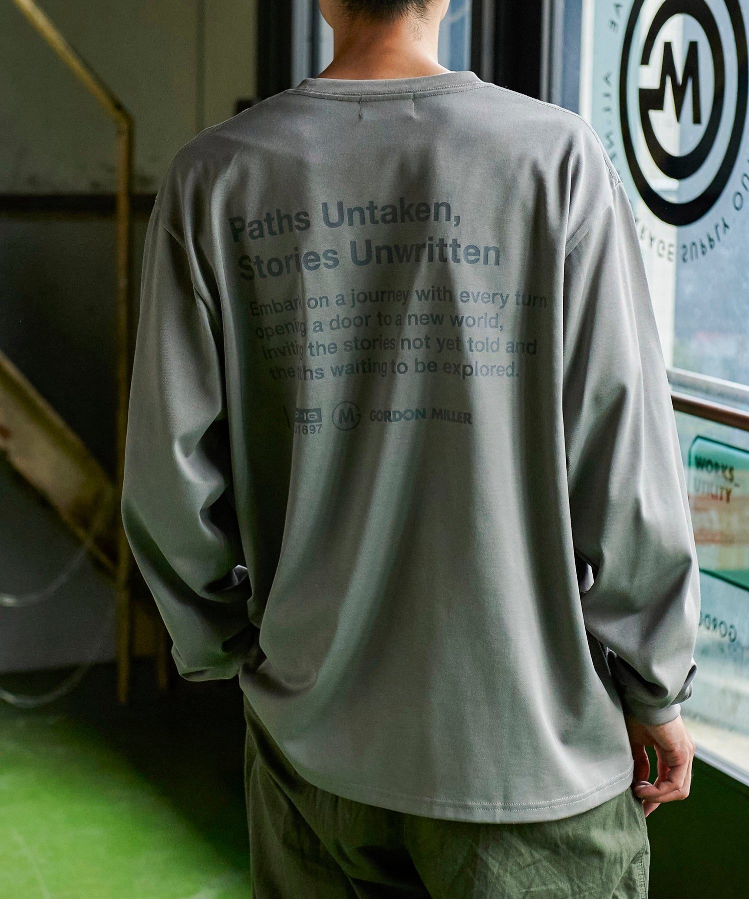 上質なコットンジャージ―のポケット付ロングスリーブTシャツ。 バックプリントには「未踏の道、未書きの物語」というロードトリップをイメージしたストーリーをグラフィックに。 落ち着いたカラートーンとリラックス感のあるボディで高級感があり、カジュアルなアイテムと合わせても、コーディネートをアップグレードしてくれる大人のためのTシャツです。