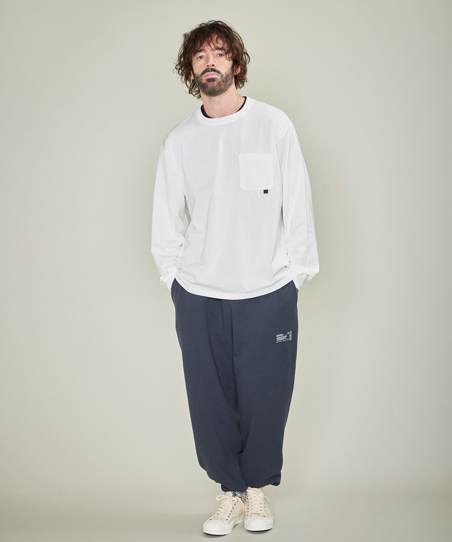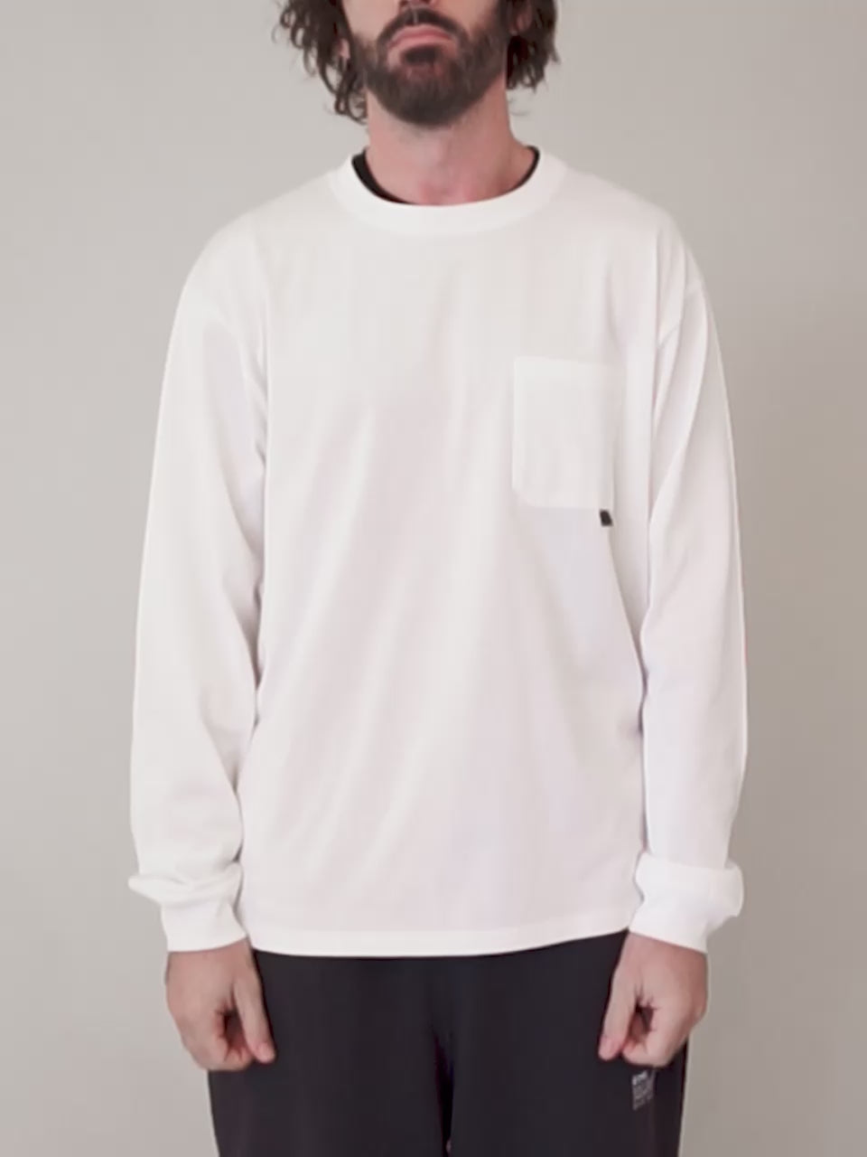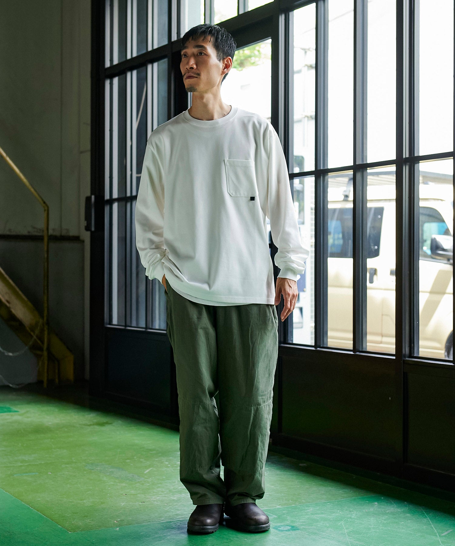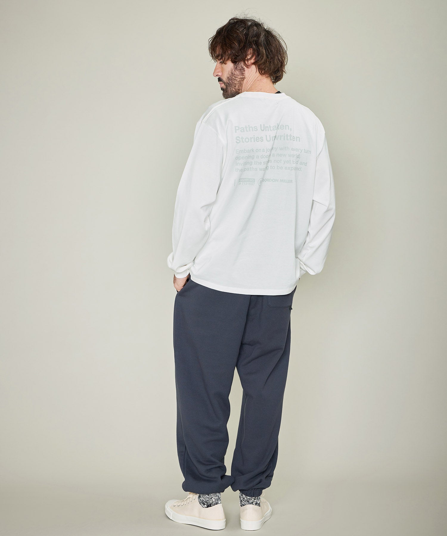 上質なコットンジャージ―のポケット付ロングスリーブTシャツ。 バックプリントには「未踏の道、未書きの物語」というロードトリップをイメージしたストーリーをグラフィックに。 落ち着いたカラートーンとリラックス感のあるボディで高級感があり、カジュアルなアイテムと合わせても、コーディネートをアップグレードしてくれる大人のためのTシャツです。