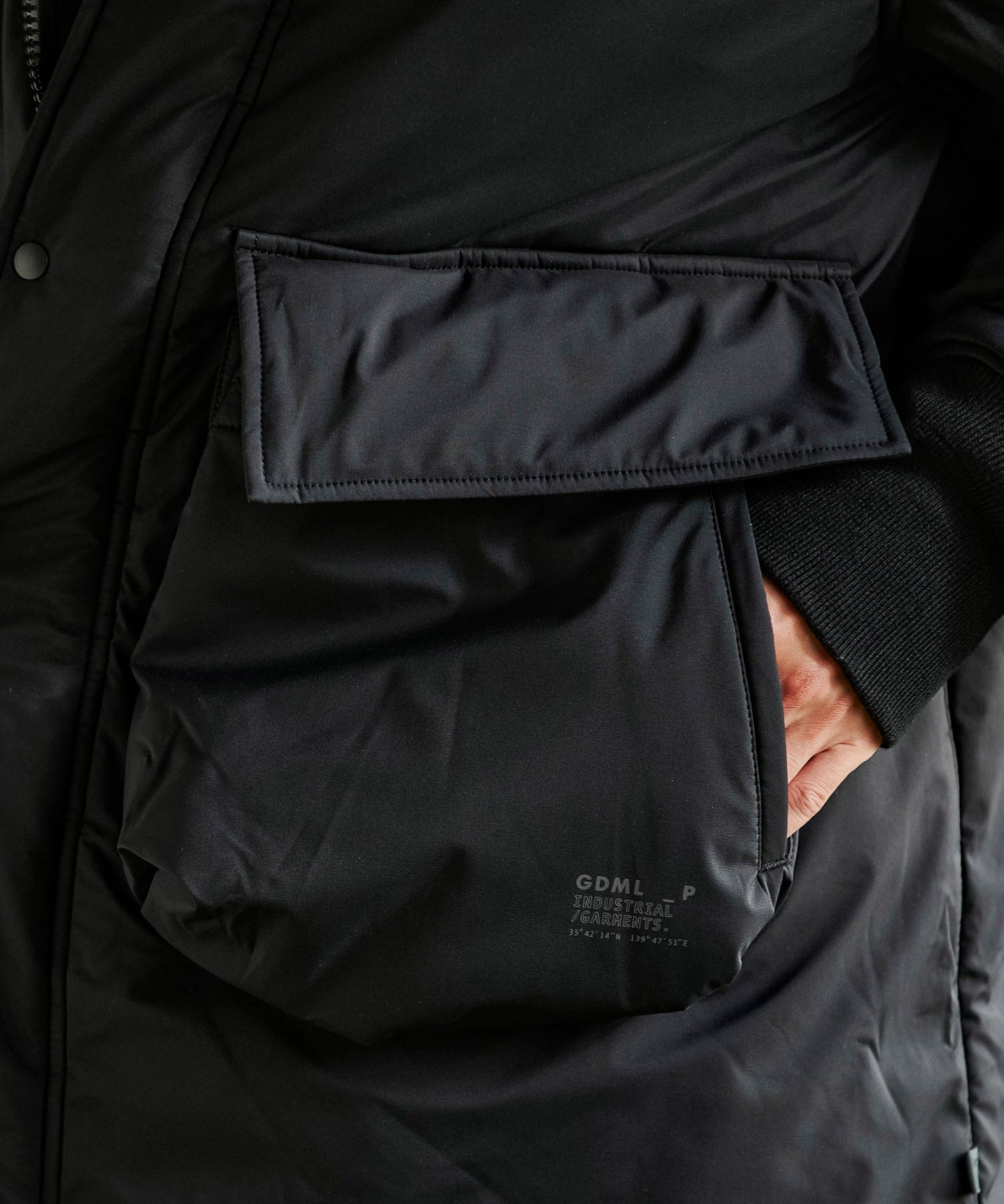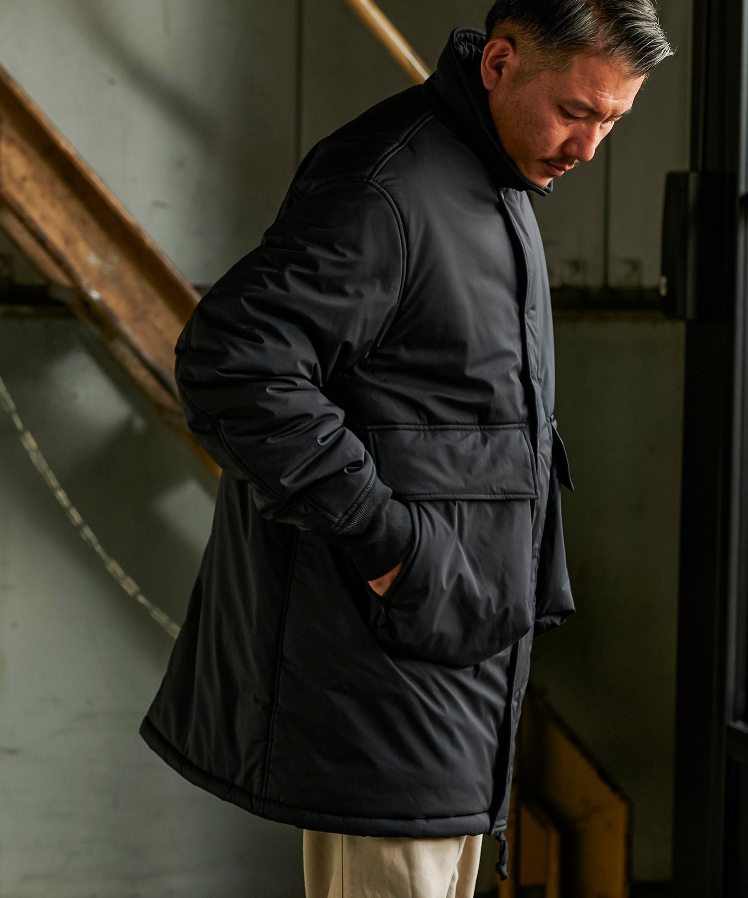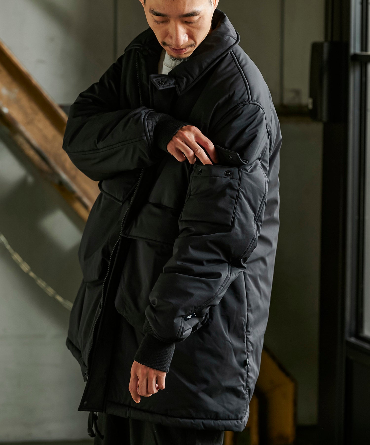 軽量リサイクルナイロンをベースに特殊ウレタン透湿フィルムをラミネートした防水透湿性の3レイヤー素材。マイクロリップでパウダータッチのフェイスでナチュラルストレッチ性があり、着用時のストレスを軽減します。本格的なアウトドア仕様の極めて高い機能性を持つ素材に、更に高機能インサレーションブランド:CLIMASHIELD®のCOMBATを採用。米軍で採用されている独自の技術による高機能中綿で、コンパクトで優れた通気性と濡れた条件下での保温性が高いのが特徴。