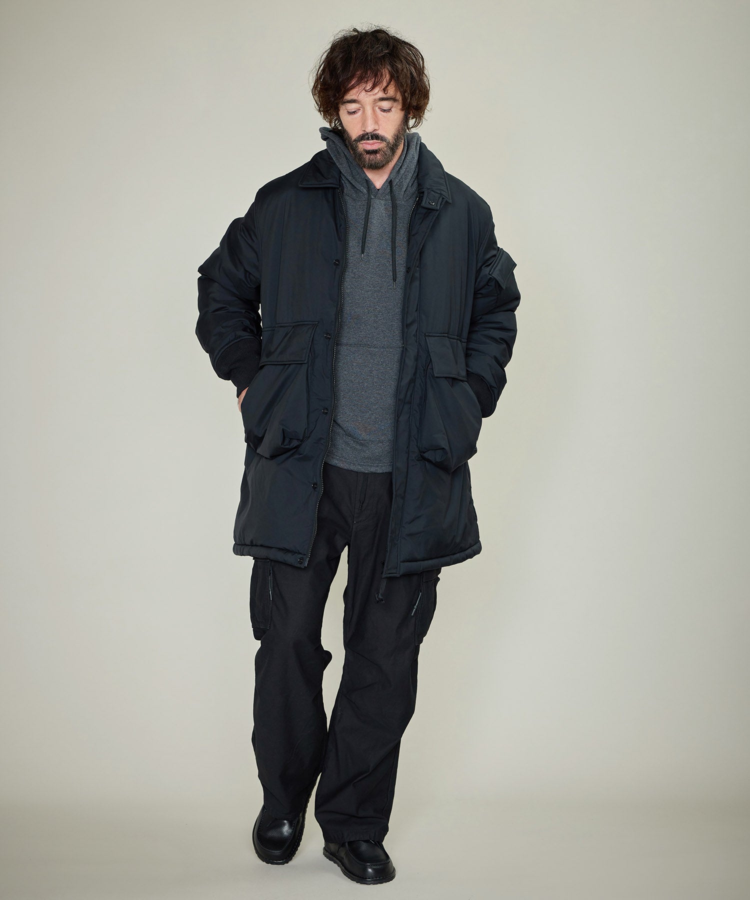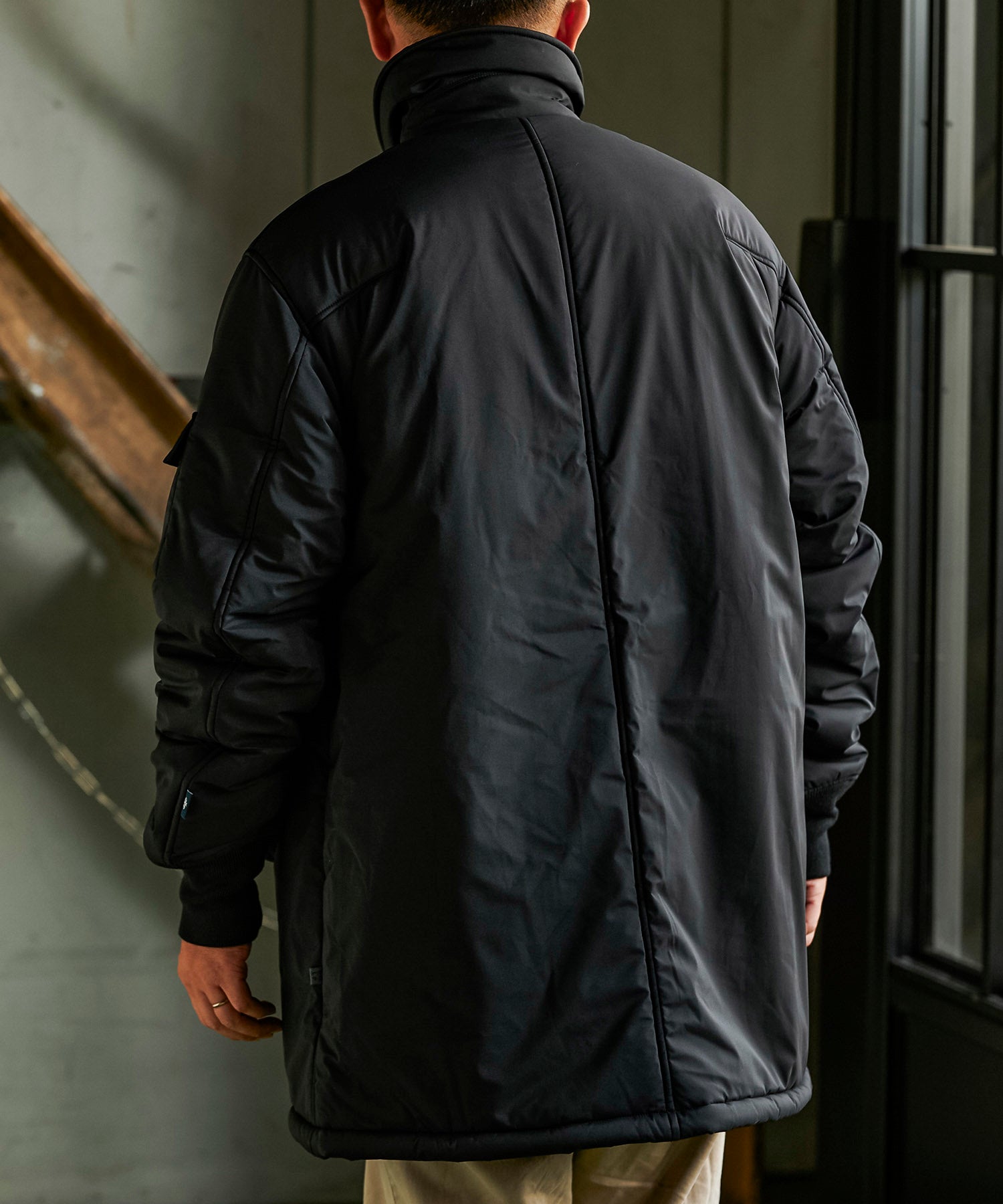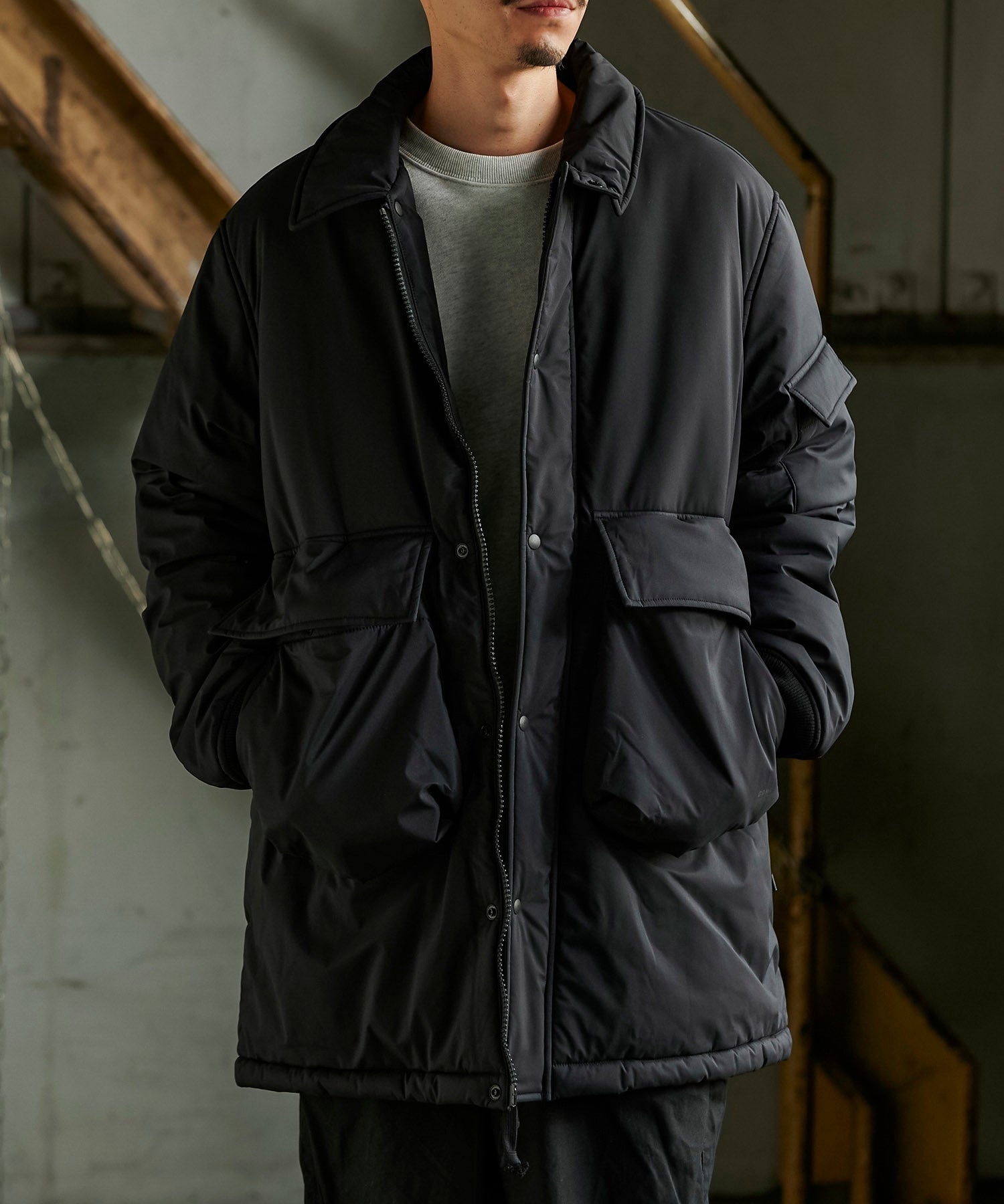 軽量リサイクルナイロンをベースに特殊ウレタン透湿フィルムをラミネートした防水透湿性の3レイヤー素材。マイクロリップでパウダータッチのフェイスでナチュラルストレッチ性があり、着用時のストレスを軽減します。本格的なアウトドア仕様の極めて高い機能性を持つ素材に、更に高機能インサレーションブランド:CLIMASHIELD®のCOMBATを採用。米軍で採用されている独自の技術による高機能中綿で、コンパクトで優れた通気性と濡れた条件下での保温性が高いのが特徴。