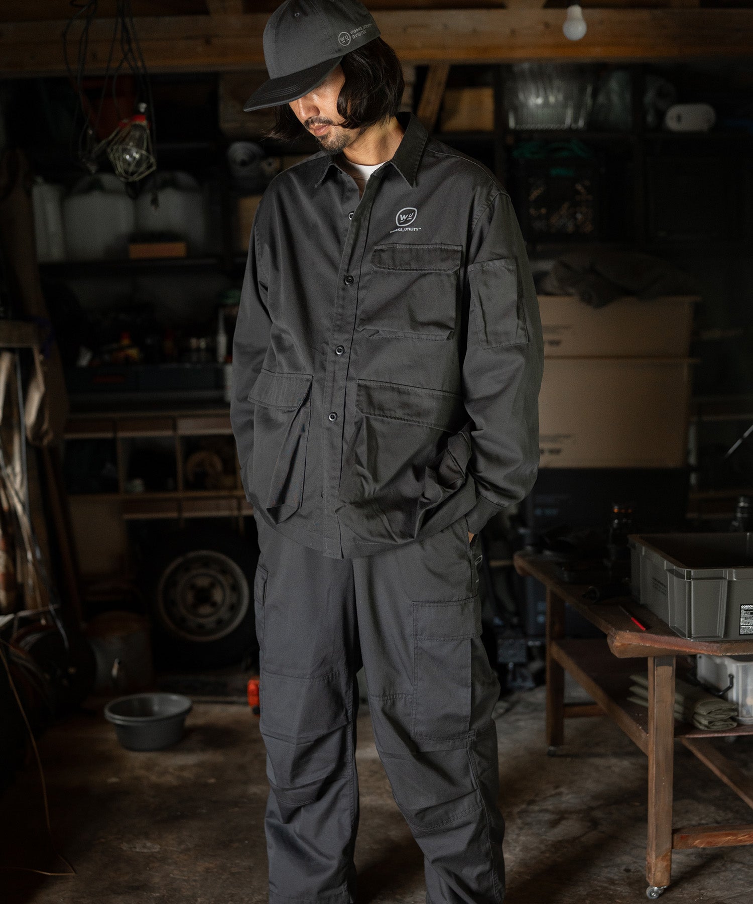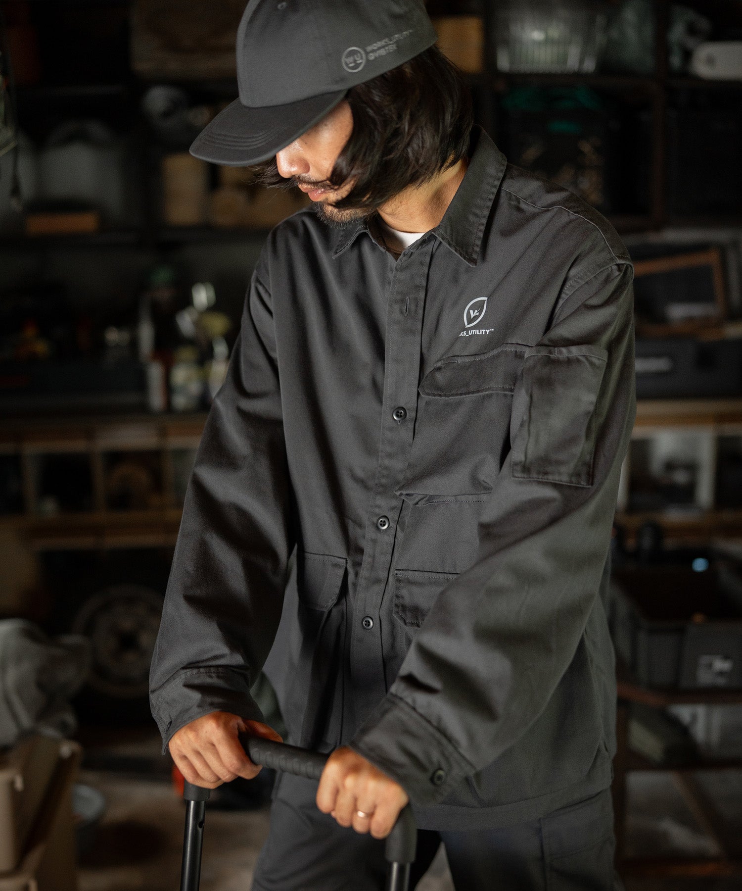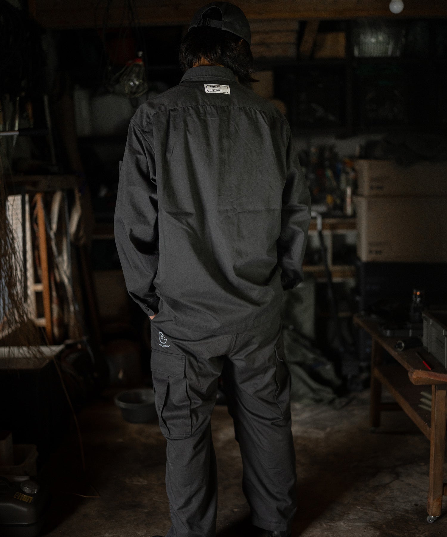 GORDON MILLERが考えるワーカーに向けたアパレルウエア。抗ウイルス技術で抗菌・防臭・消臭の素材を開発したVIBTEX™のテキスタイルを採用した、かっこ良くて機能的、ユニセックスで着用できるユニフォーム。VIBTEX™のポリエステルコットンのツイル素材。コットンの丈夫さと、ポリエステルの軽さ、速乾性を併せ持った素材。ワッシャー仕上げでカジュアルな印象ですが、自然な艶を持ち高級感があります。大容量のポケット、ペンやワークライトを収納出来るポケット付き。まくりやすい仕様の袖口仕様、肩回りにゆとりがあり、中に重ね着をしても動きを妨げないシルエットです。胸元にはブランドアイコンのプリント、後ろ衿下にVIBTEX™とのコラボネームが付いています。ハードワークでも清潔を保てる機能のワークシャツ。