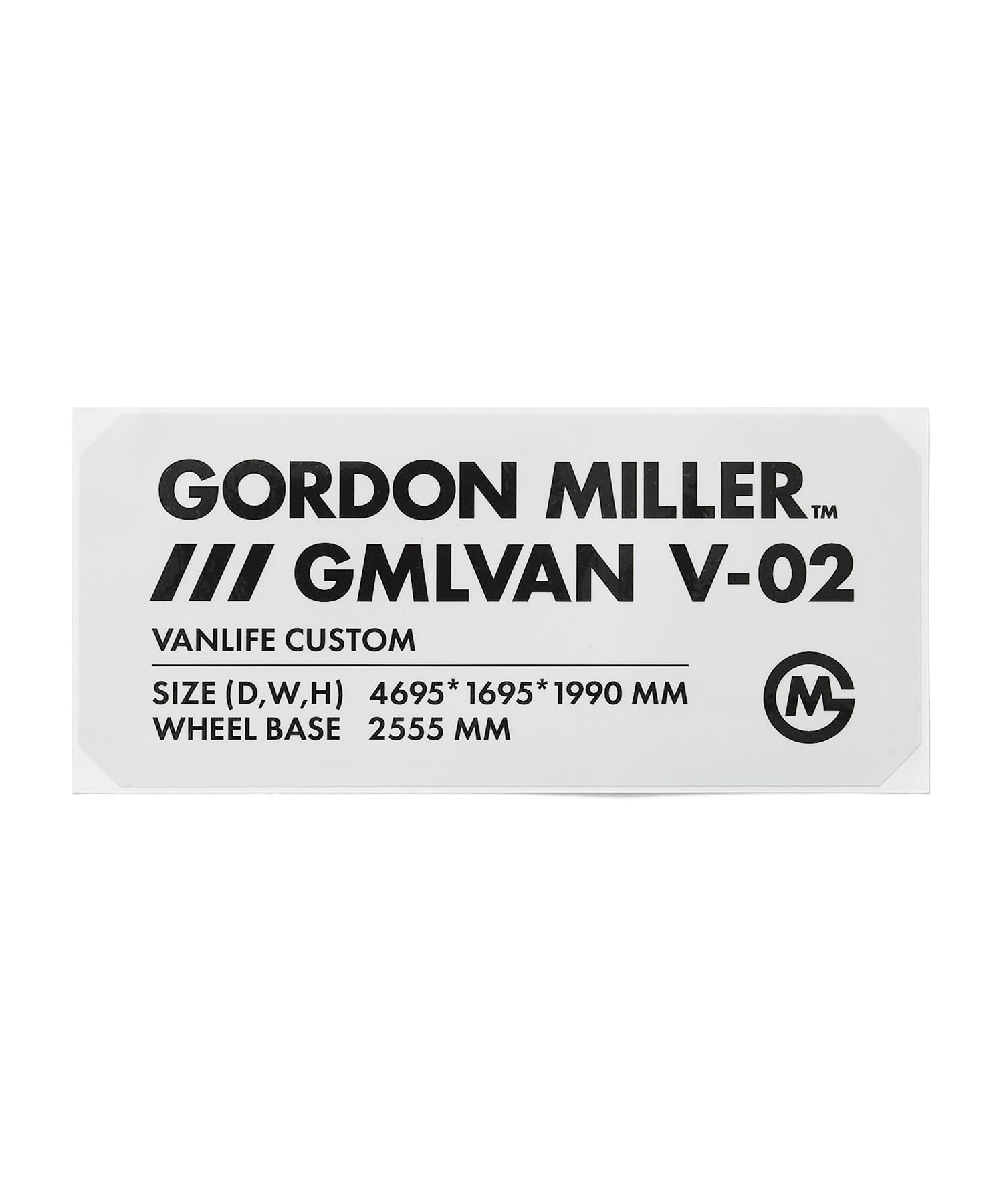 GORDON MILLERMOTORS GMLVANの車種別のカスタム仕様をデザインに落とし込んだステッカー。グレー地にブラックロゴの1色展開。他デザインと組み合わせてカスタマイズしてください。グロスタイプ。汎用性もあるため様々な車種に対応可能なおすすめ便利グッズです。