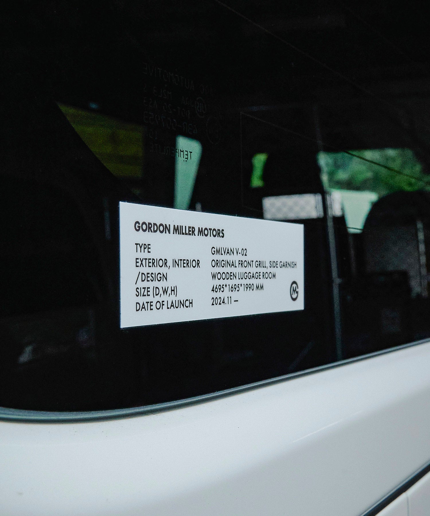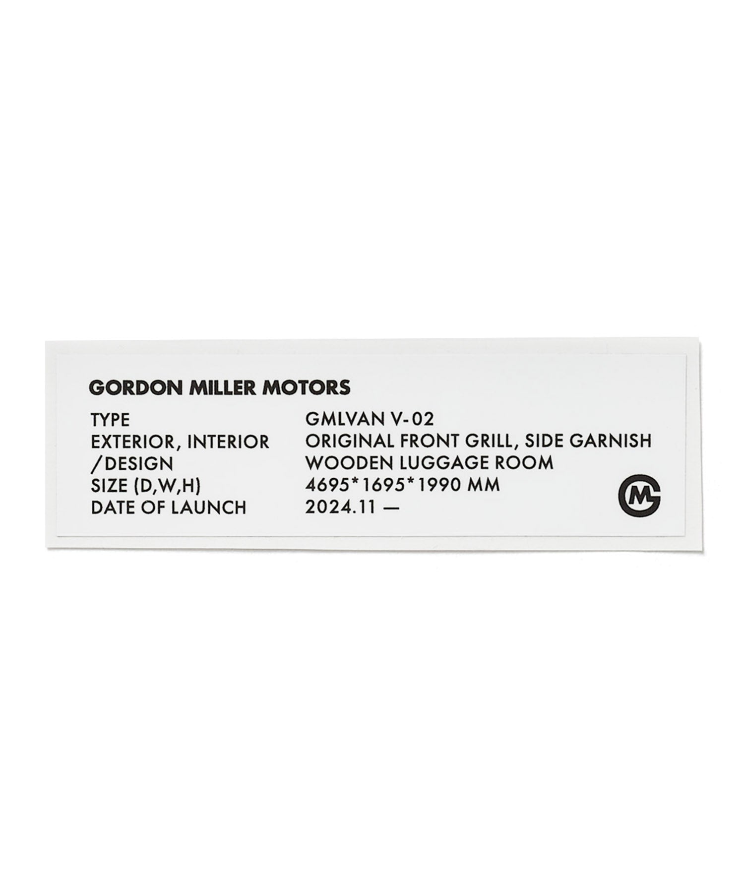 GORDON MILLERMOTORS GMLVANの車種別のカスタム仕様をデザインに落とし込んだカードサイズのステッカー。ホワイト地にブラックロゴの1色展開。他デザインと組み合わせてカスタマイズしてください。マットタイプ。汎用性もあるため様々な車種に対応可能なおすすめ便利グッズです。