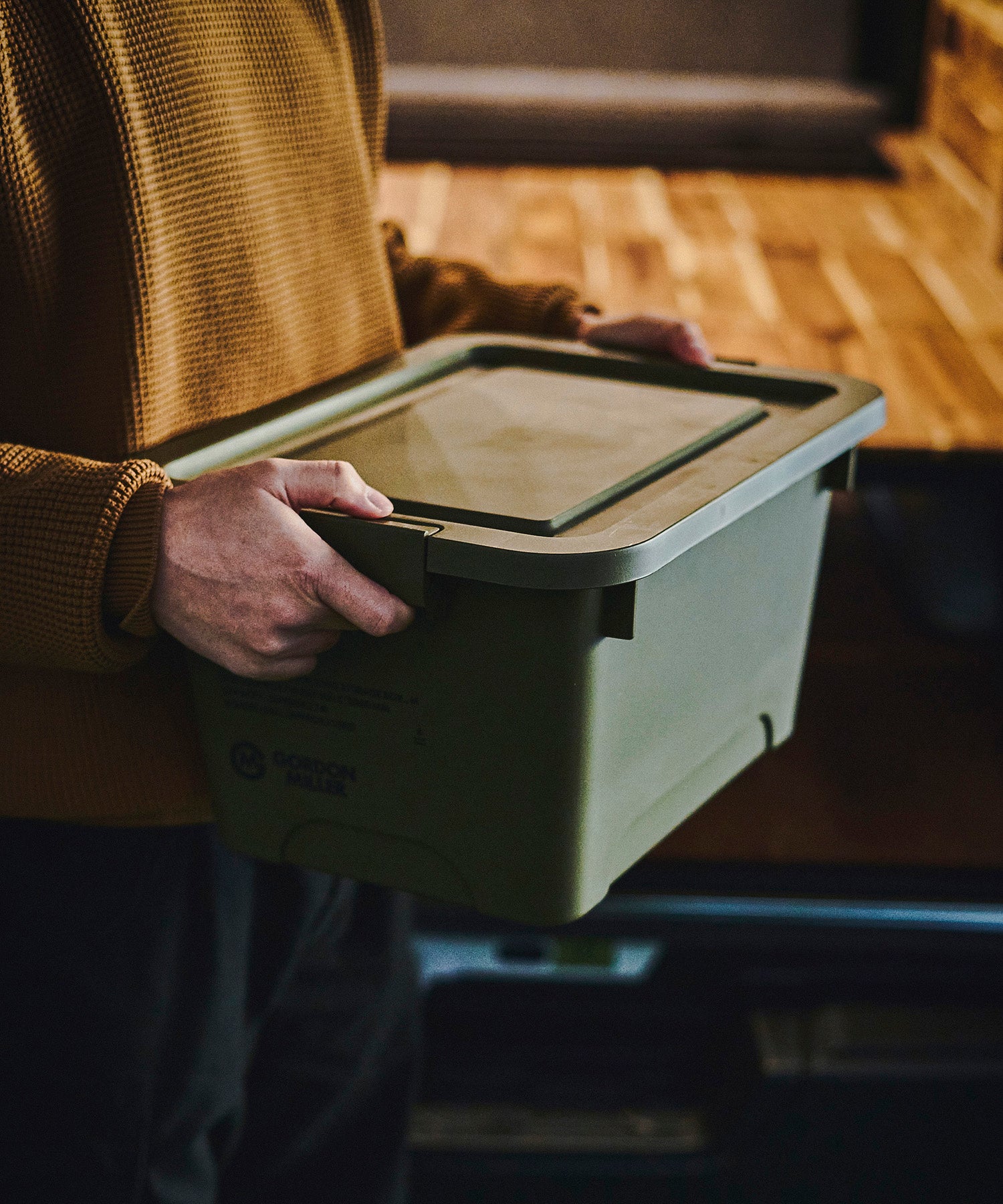 こちらはおもちゃの収納や缶詰、調味料のストックなど使い勝手の良いMサイズ。バックル固定可能なフタつきなので、隠す収納としてスッキリと整理整頓することができます。工具や洗車用品などを収納するストレージボックスとしての用途のほか、衣類などの室内用収納ケースとしてや、園芸用品・日用品を収納するストッカーとしてなど、様々なシーンでおすすめできるアイテムです。