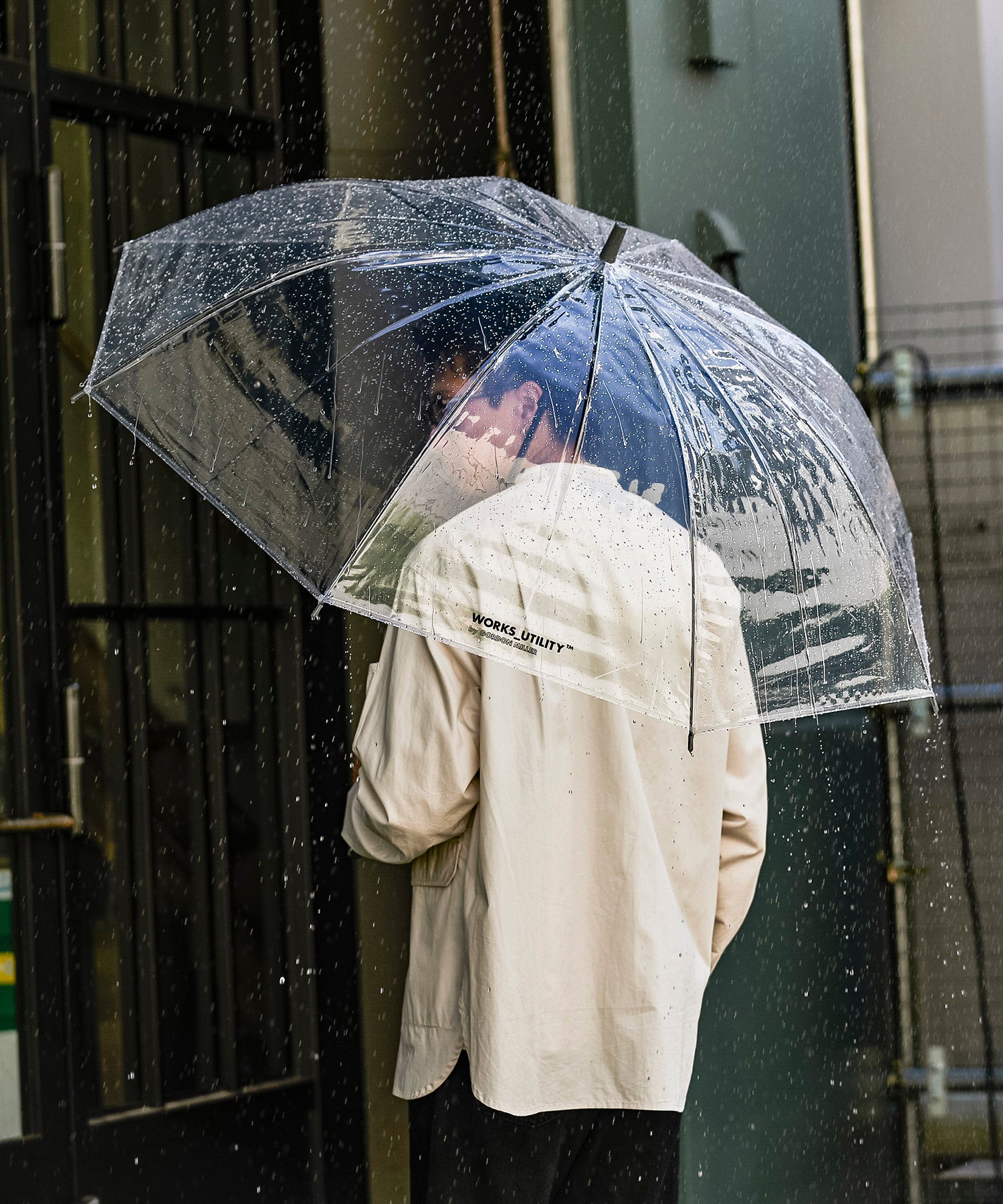 GORDON MILLERの新レーベル WORKS UTILITYのデザインが施されている軽くて丈夫かつ70cmと大きなサイズのビニール傘。 グラスファイバー製の骨を使用しておりますので、風でひっくり返っても元に戻せます。 中骨は、折れにくく強度の高い太目の素材を使用しておりますので安心です。 耐久性があり、壊れにくい素材なので、ロングシーズンお使いいただけます。 透明ビニールと持ち手に配されたロゴプリントが、シンプルながらも存在感は抜群です。 また、持ち手のロゴマークが取り違えを防いでくれます。