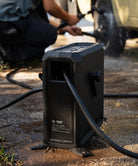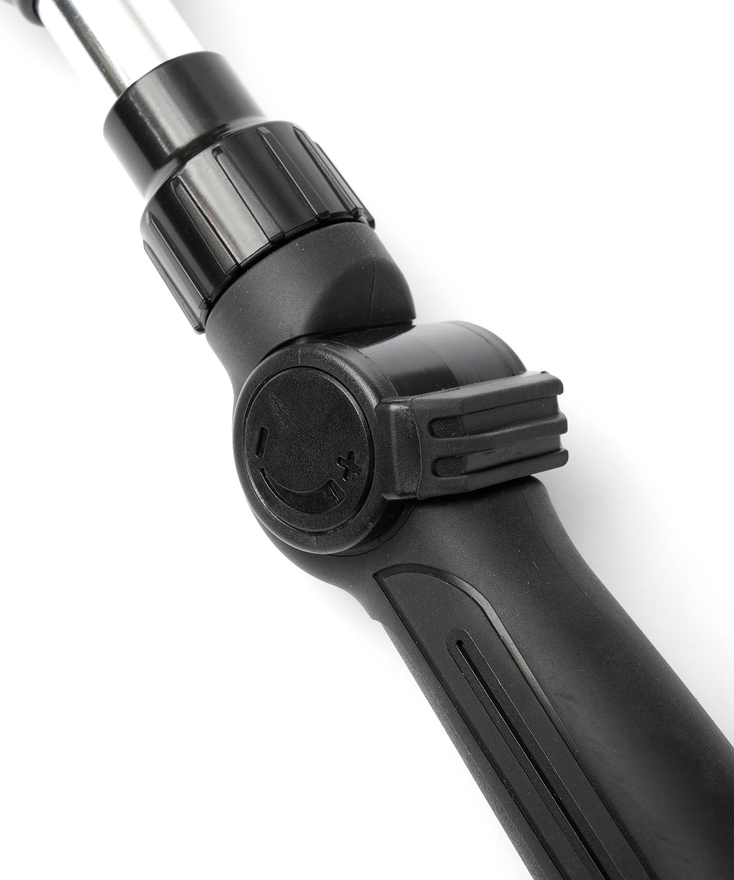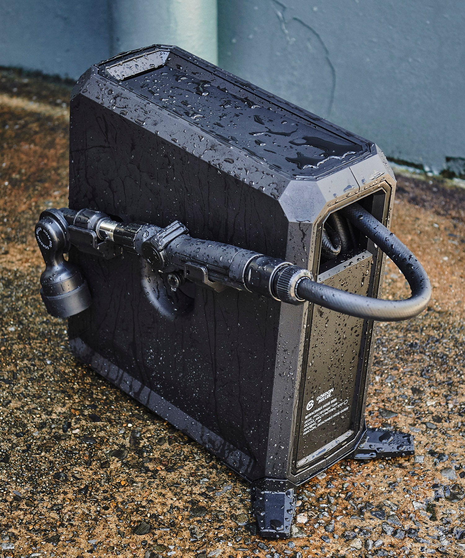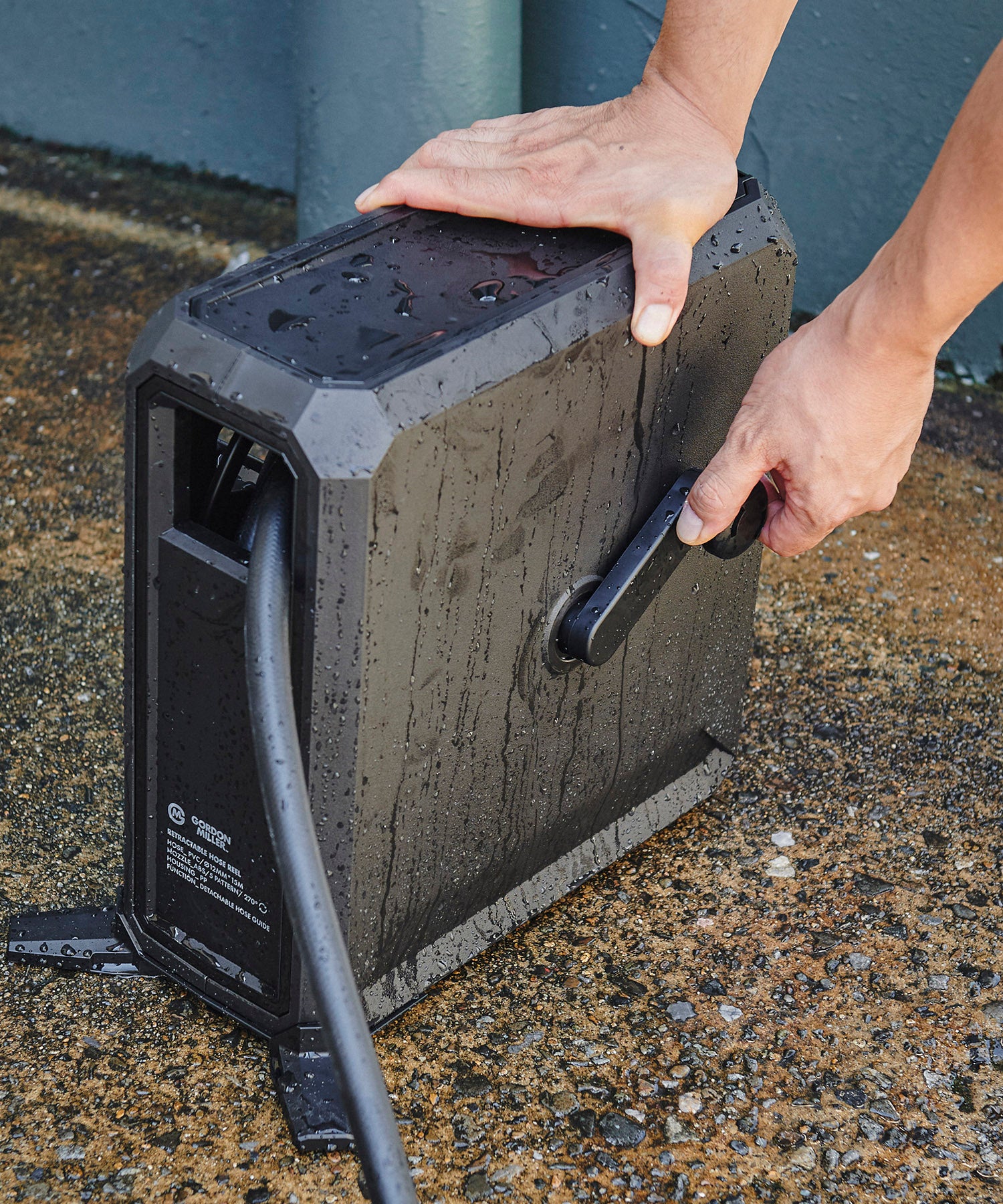 洗車に特化した新しいホースリール。ブラックに統一された直線的でカッコいいデザインは、ガレージに置きたくなるようなお気に入りギアのひとつになりそうです。ホースの改良により耐水圧がUPしたのと、絡まりにくいさらさらのホースは取り回しがしやすく、またマットなブラックがかっこいい。別パーツのホースガイド2個が付属されており、洗車時にタイヤ下に差し込むことでホースがタイヤに引っかかるのを防いでくれます。そして最大の特徴が絶妙な長さのショートノズル。ロングノズルよりも細かな作業がしやすく、洗車に特化した縦水形はジェット、ジェットワイド、フラットスリム、フラット、シャワーの5種類。先端ヘッドは270°角度調節が可能、また先端は車を傷つけにくいゴム製。水量の調節はスライドレバー式:親指だけで水量調節できるので、水の跳ね返りを防いだり、あらゆる箇所へ細かく調整可能です。タイヤ裏や角度が難しい箇所にもアプローチでき、散水作業が効率的に行えます。ノズルは本体サイドに収納できます。