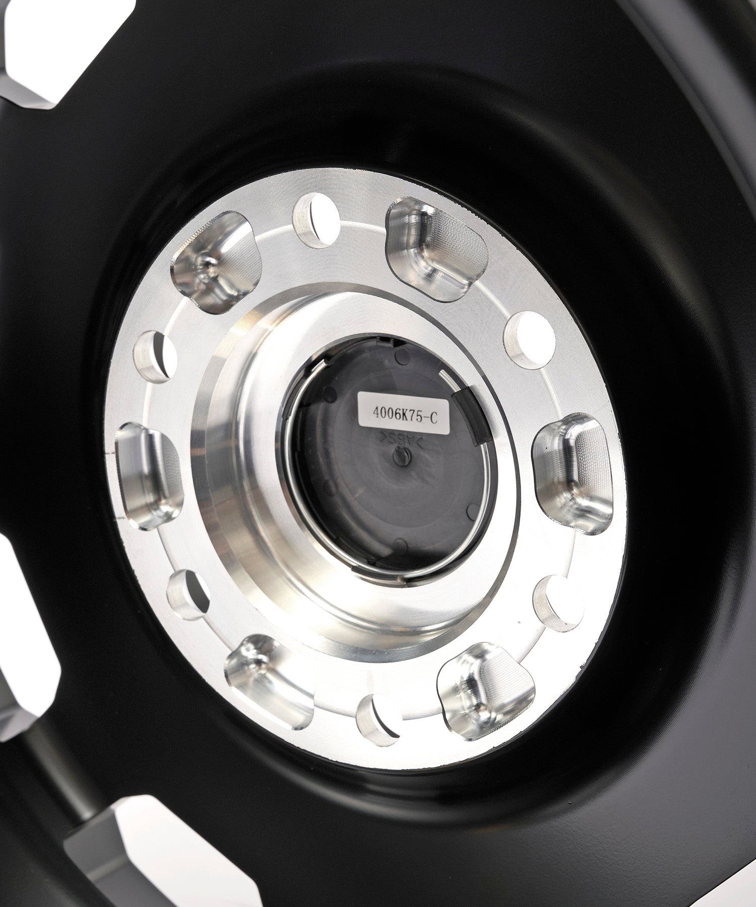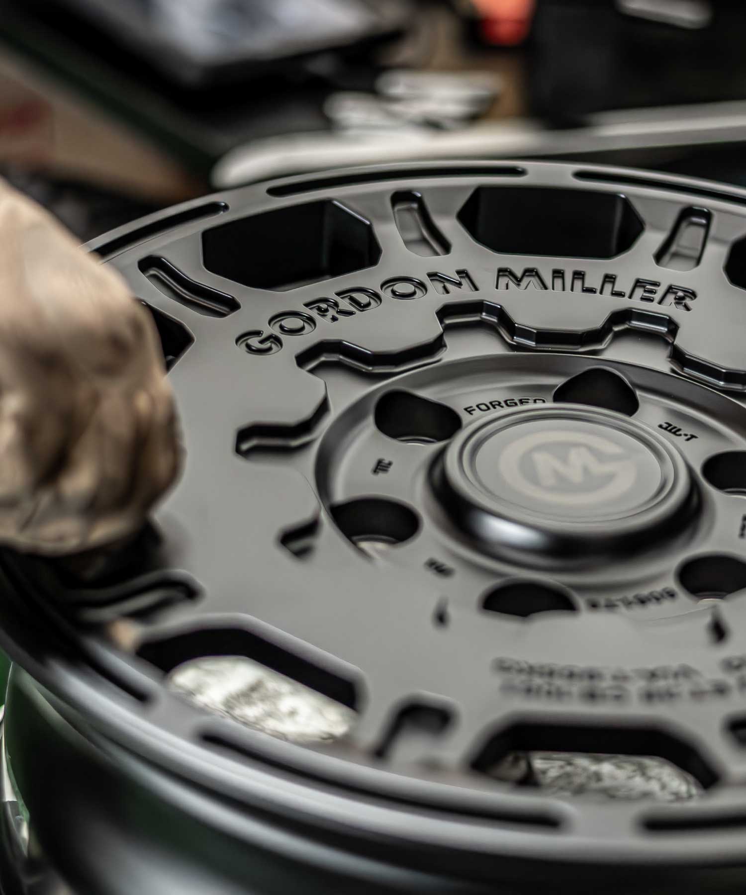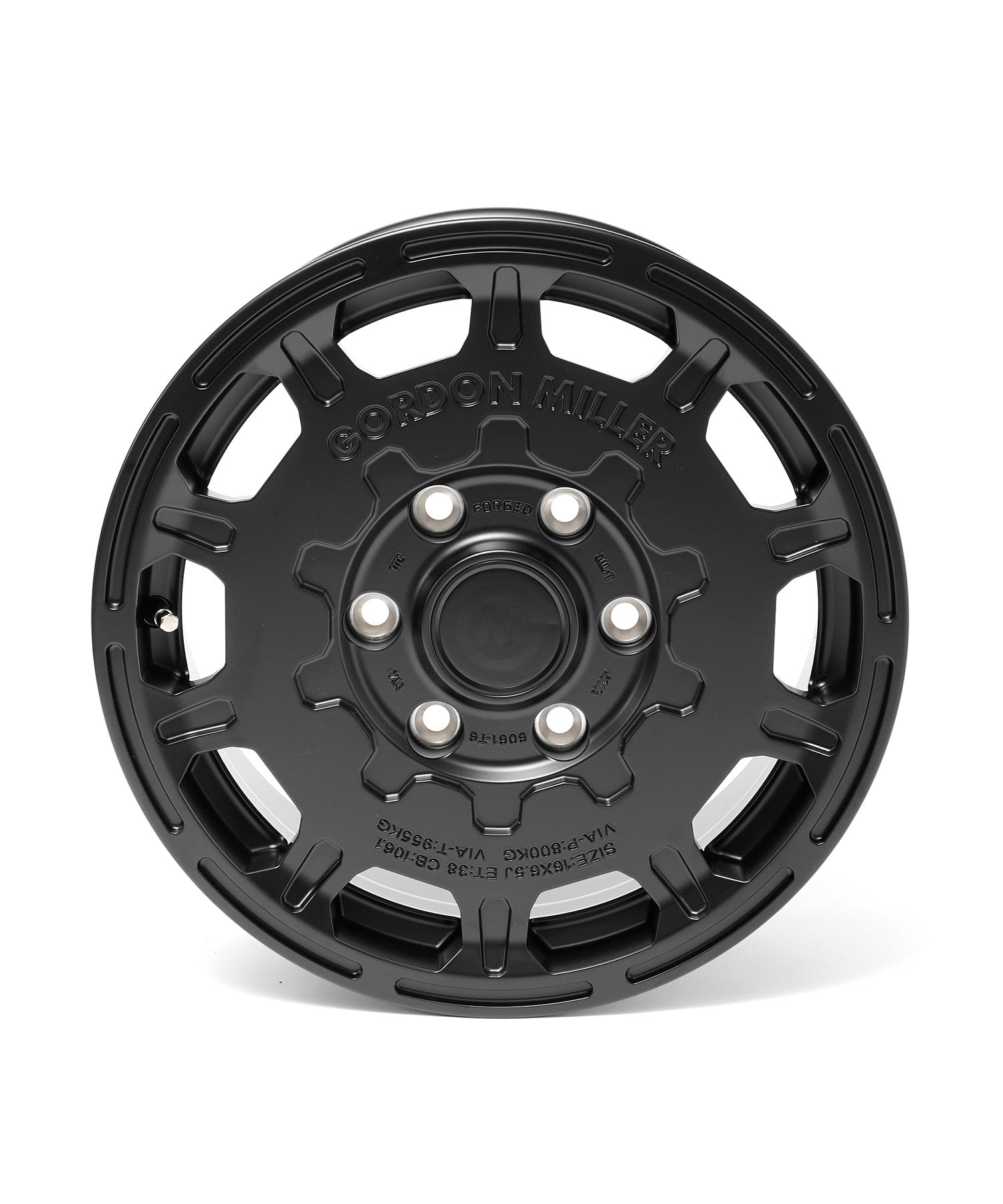 ハイエース / GMLVAN V01用に開発された、 デザインと性能を兼ね備えた鍛造ホイール は、 直線と平面で構成されたインダストリアルなデザインに、 鍛造ならではの強度と軽さ 耐久性が特徴的です。 鍛造ビレット製法で作られてたアルミホイール。 鍛造ビレット製法とは、 アルミニウム合金の金属塊を12000tのプレス機で鍛造します。 この際に、 金属内部の結晶が微細化され、 密度が高まります。 次にフローフォーミング製 法にてリムを形成し厚み2.6㎜の薄さに引き伸ばします。 そして、 5次元加工機でDISK面にデザインを施してから、 色々な検査を経て塗装工程に入り、 強度試験を行い検品後出荷 をしています。 鍛造ビレット製法は、 高い強度と軽量化を実現する優れた製造方法です。