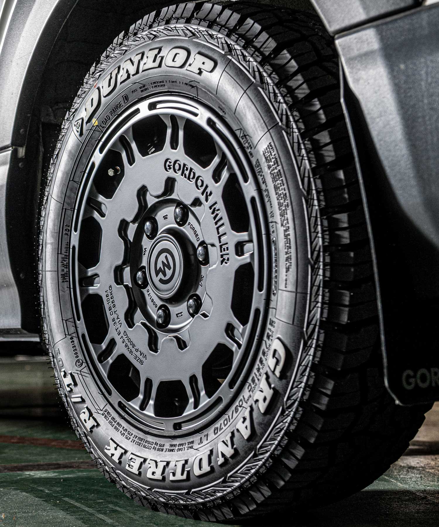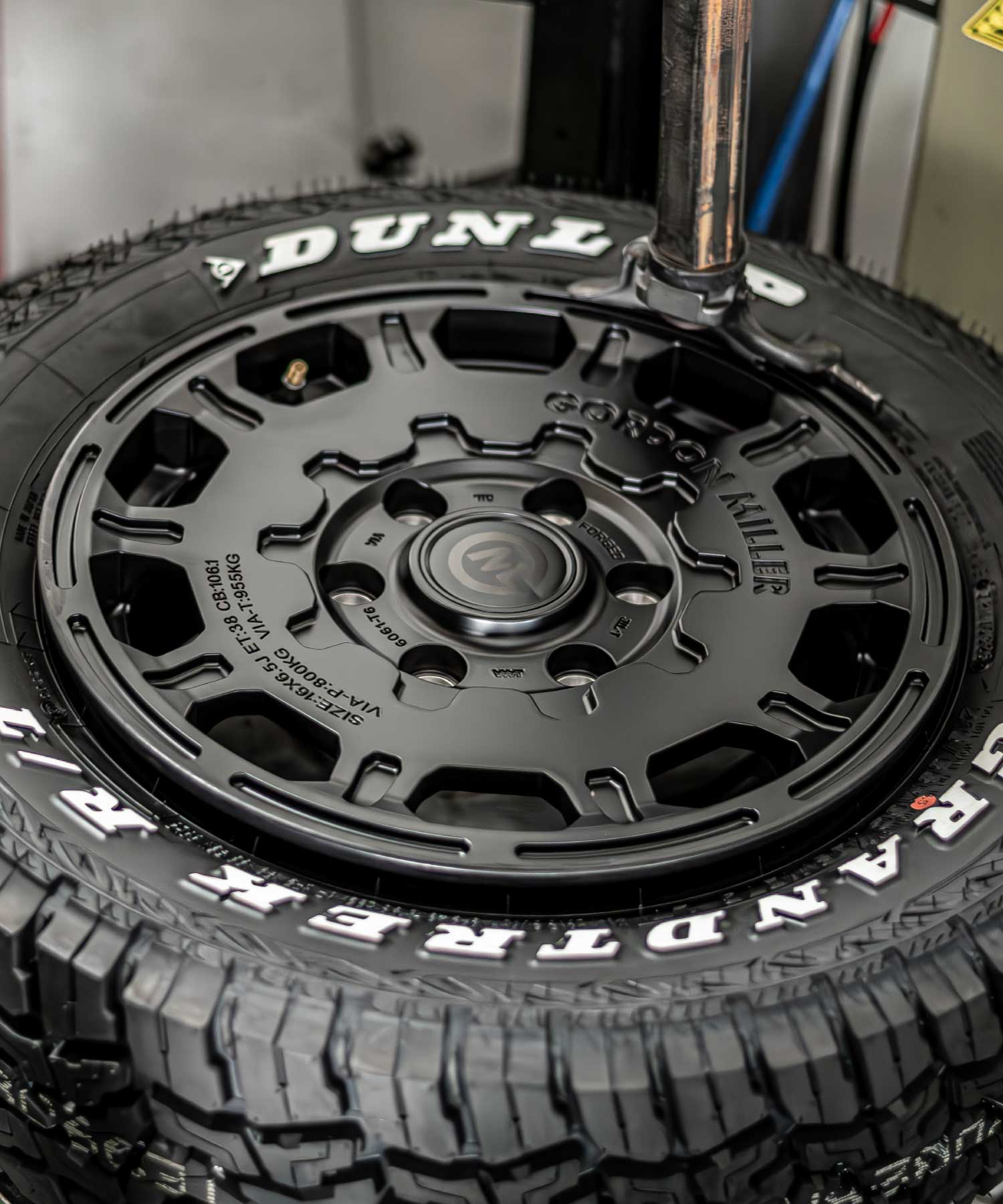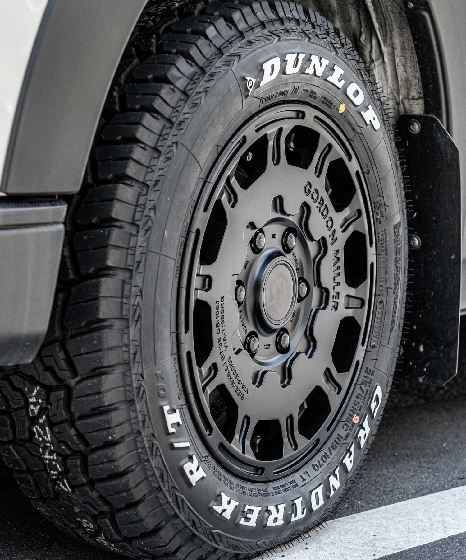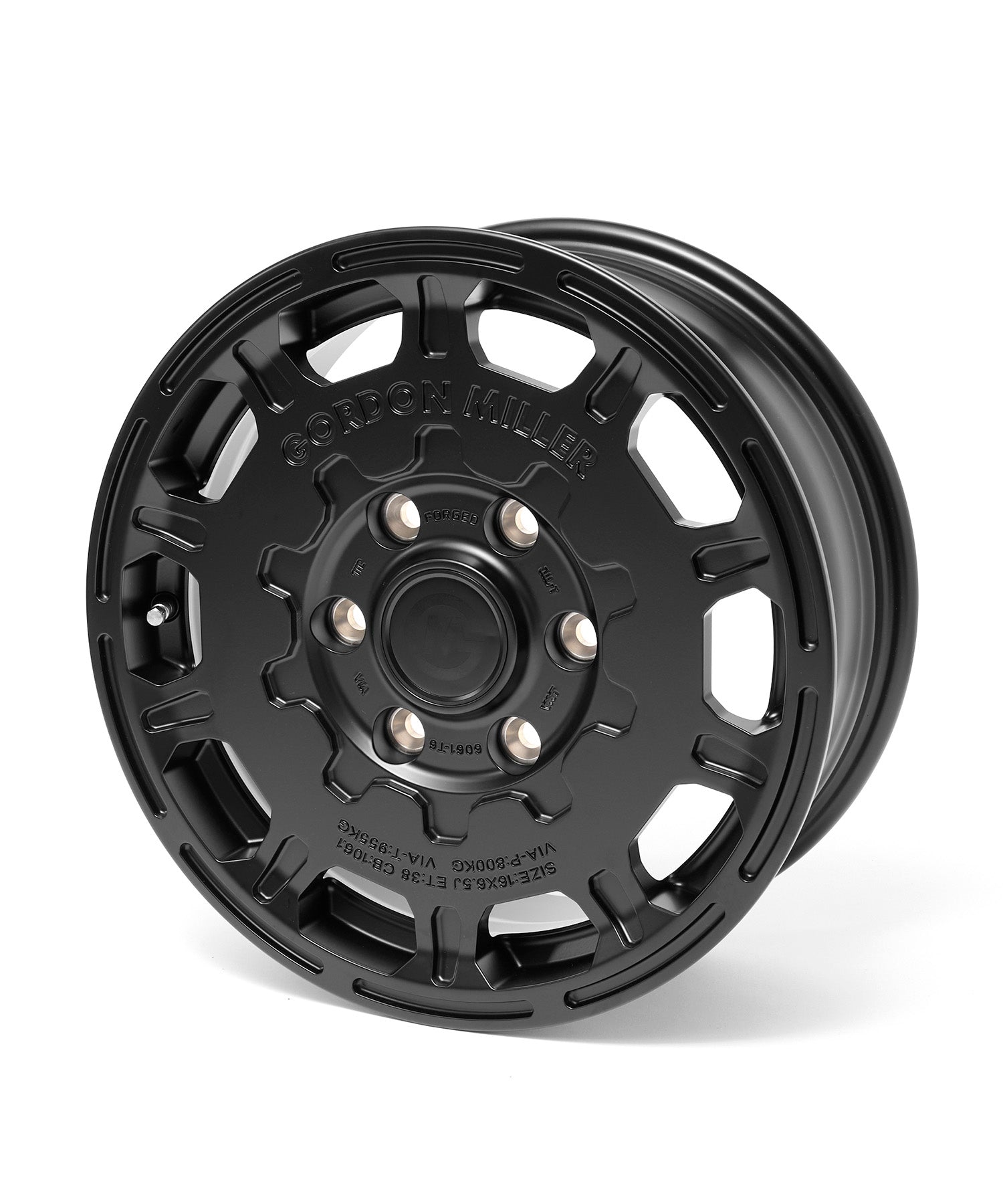 ハイエース / GMLVAN V01用に開発された、 デザインと性能を兼ね備えた鍛造ホイール は、 直線と平面で構成されたインダストリアルなデザインに、 鍛造ならではの強度と軽さ 耐久性が特徴的です。 鍛造ビレット製法で作られてたアルミホイール。 鍛造ビレット製法とは、 アルミニウム合金の金属塊を12000tのプレス機で鍛造します。 この際に、 金属内部の結晶が微細化され、 密度が高まります。 次にフローフォーミング製 法にてリムを形成し厚み2.6㎜の薄さに引き伸ばします。 そして、 5次元加工機でDISK面にデザインを施してから、 色々な検査を経て塗装工程に入り、 強度試験を行い検品後出荷 をしています。 鍛造ビレット製法は、 高い強度と軽量化を実現する優れた製造方法です。