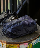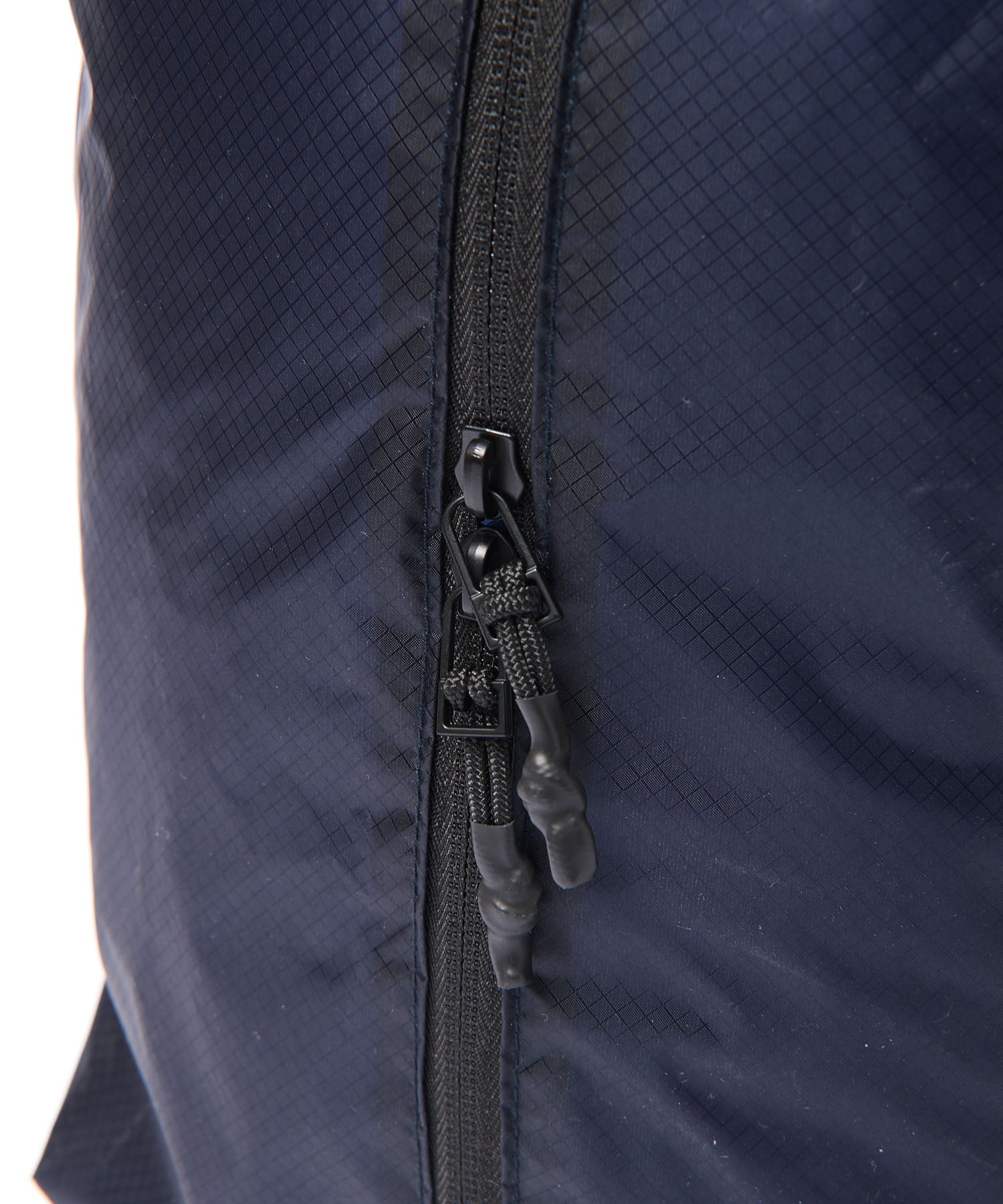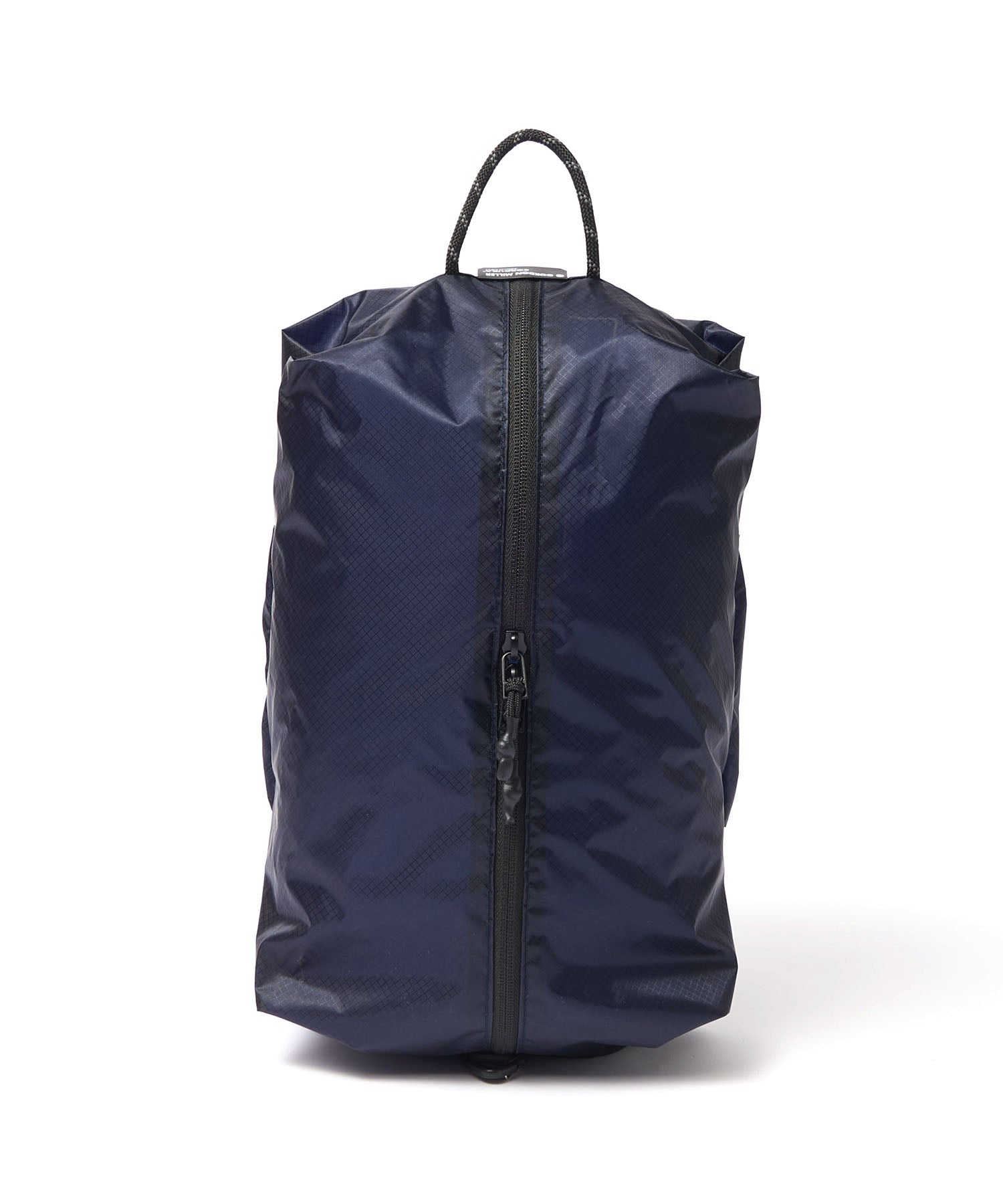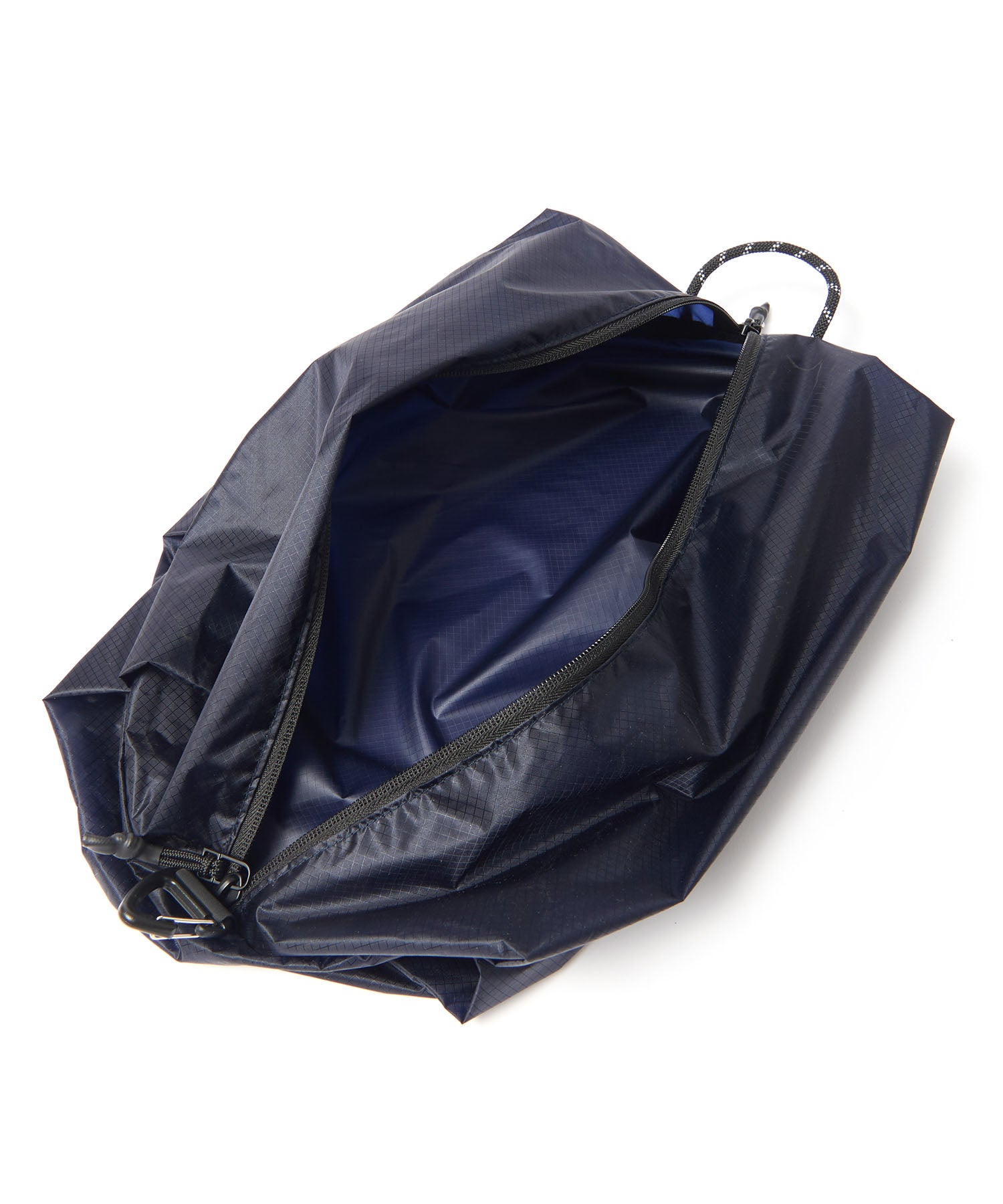 'GORDON MILLER CORDURA® Ripstop Nylon PACK’シリーズ高い強度と耐摩耗性をもつ66ナイロンのコーデュラ糸を使用したバッグのシリーズです。生地の表面にはシリコンコーティングを施し耐水性に優れ、防汚機能を備えています。裏面はウレタンコーティングにより耐水性3,000mmになります。三角カラビナがついているので、ベルトループやバッグ等に引っ掛けて持ち運びができます。ダブルジッパーで開閉も容易なサック。車中泊やジムトレーニング時にスニーカー入れとしても使える便利なサイズです。下着等の着替え類を入れたり、タオルやシャンプー等を入れて銭湯道具一式を入れたり、トラベルシーン、キャンプシーンでの利用がとても便利です。