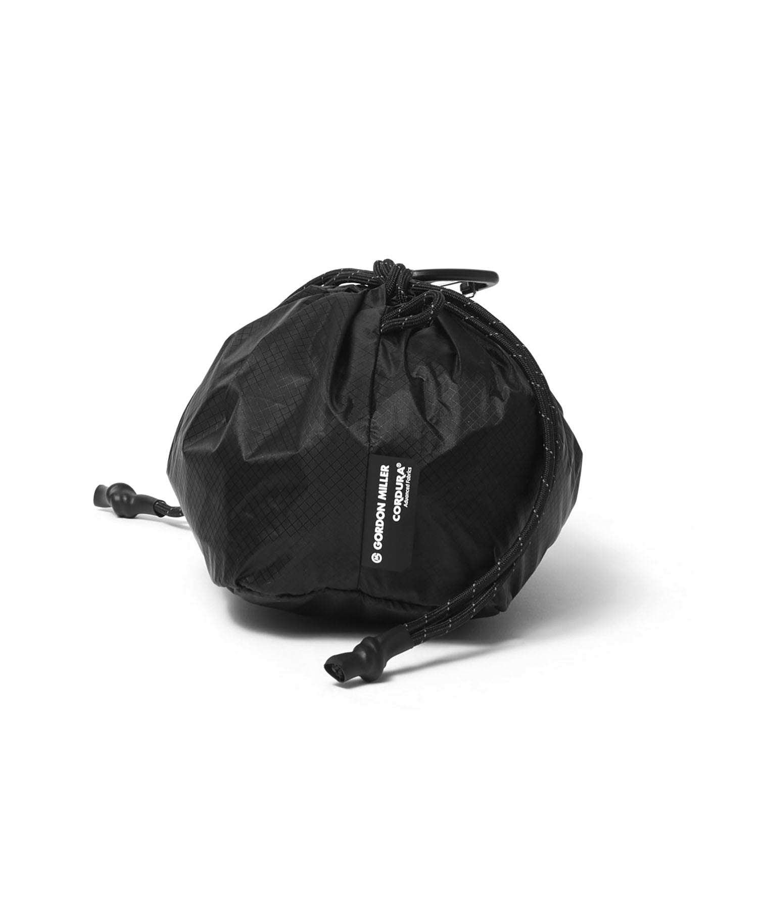 'GORDON MILLER CORDURA® Ripstop Nylon PACK’シリーズ。高い強度と耐摩耗性をもつ66ナイロンのコーデュラ糸を使用したバッグのシリーズです。生地の表面にはシリコンコーティングを施し耐水性に優れ、防汚機能を備えています。裏面はウレタンコーティングにより耐水性3,000mmになります。三角カラビナがついているので、ベルトループやバッグ等に引っ掛けて持ち運びができます。ポケッタブル仕様で小さくコンパクトに収納できます。日常バッグとして、スマートフォン、財布、鍵、ハンカチ・ティッシュといった最低限のモノをいれたり、サニタリーや化粧品を入れるのに便利なサイズです。