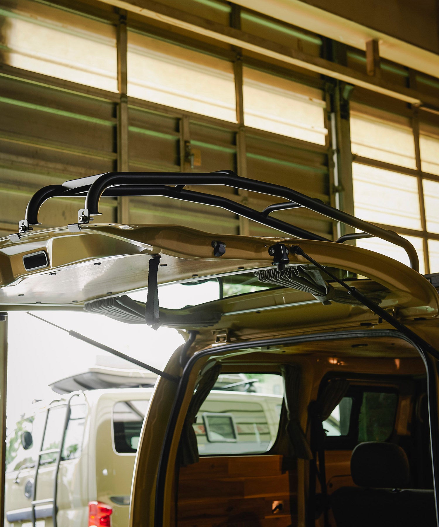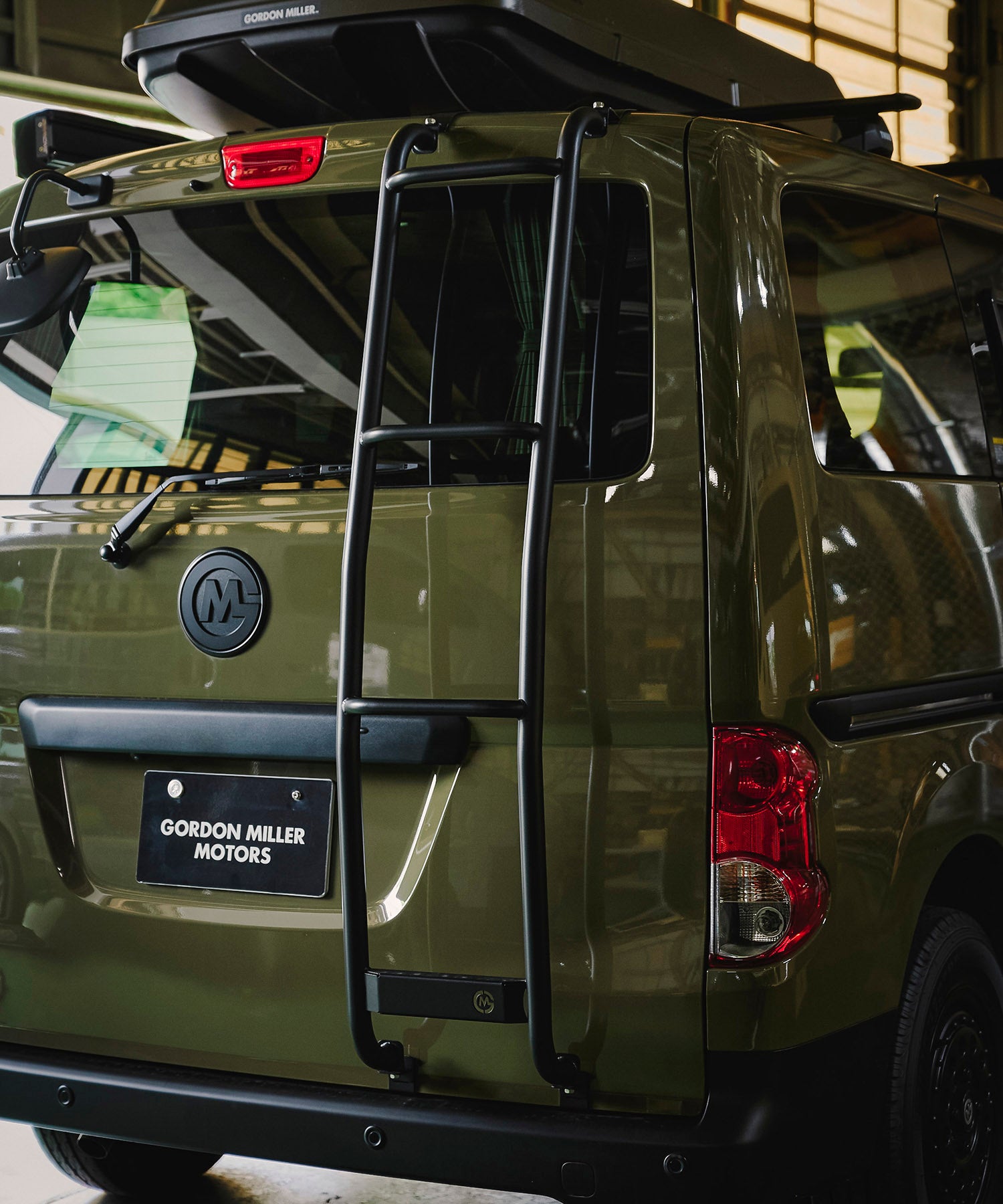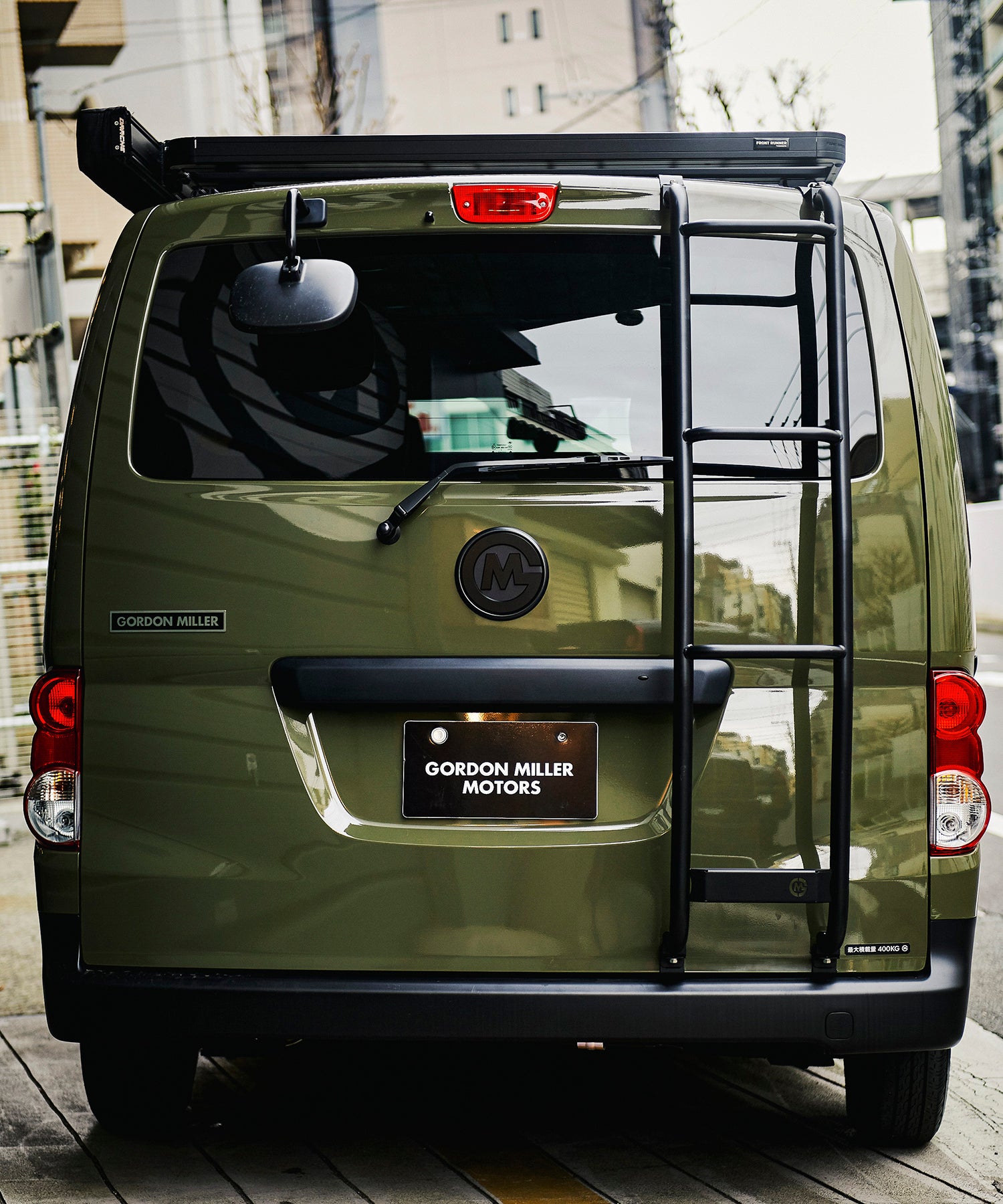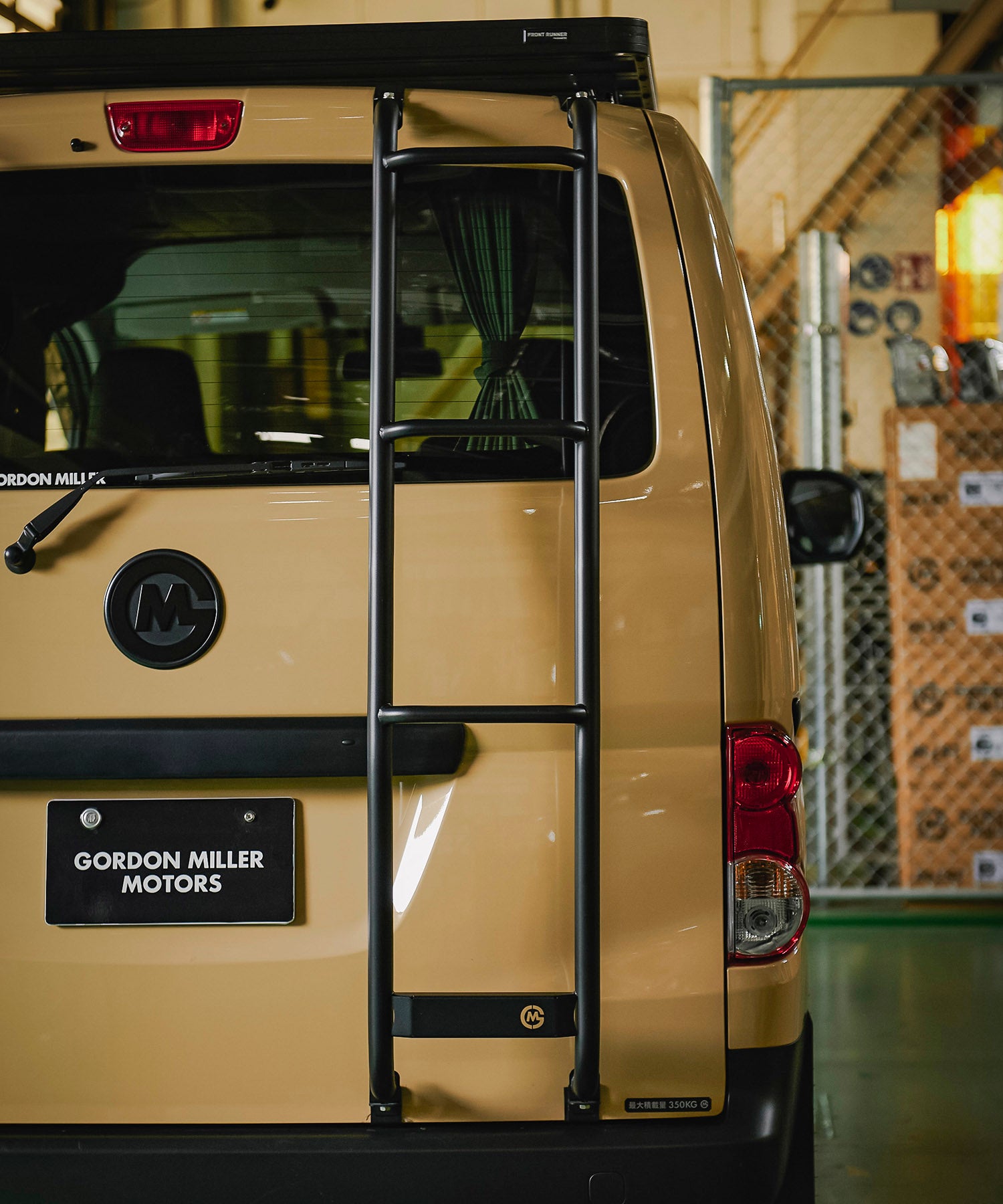 「GORDON MILLER」ロゴが型抜きされたC-01専用のリアラダーです。 ルーフラックやシステムキャリアなど、荷物の積み降ろし作業をスムーズに行え便利です。 表面の塗装は粉体塗装で仕上げる事により触り心地が良くアウトドア感を演出します。