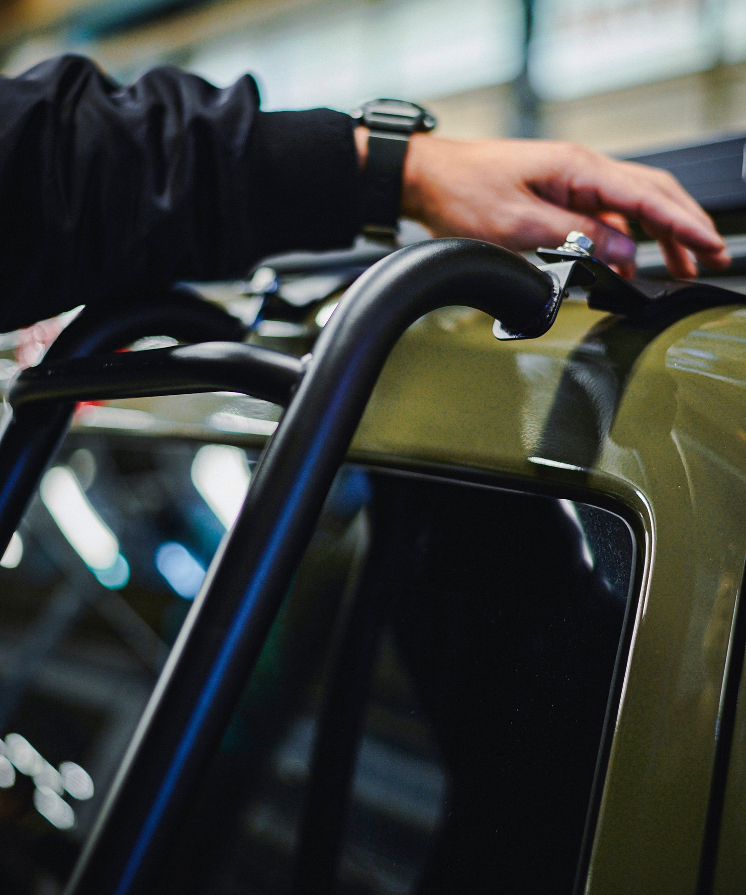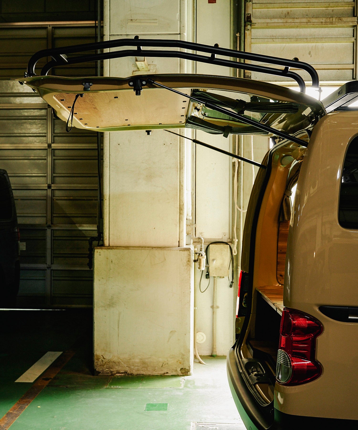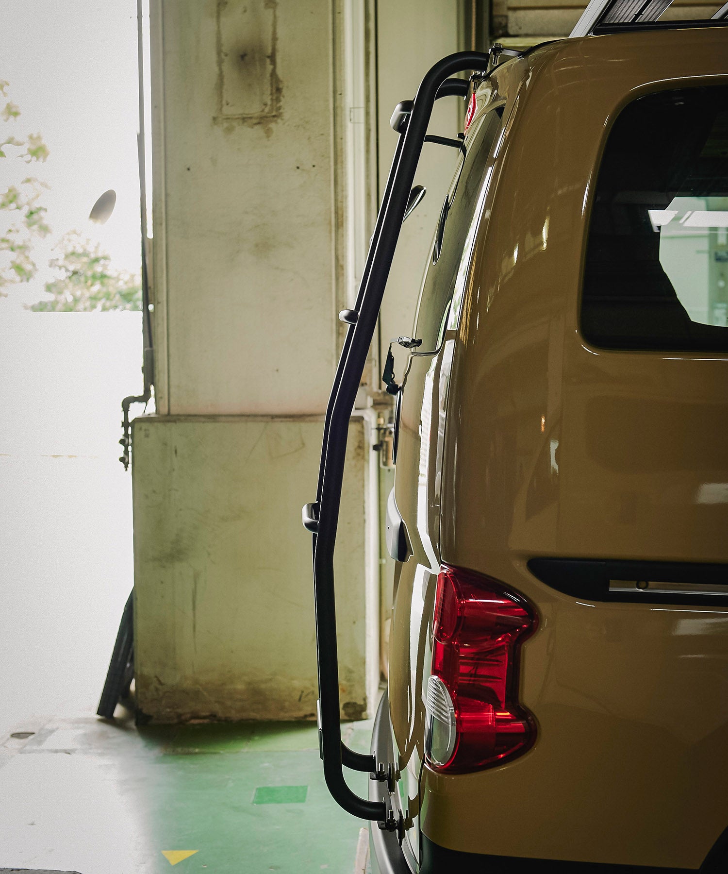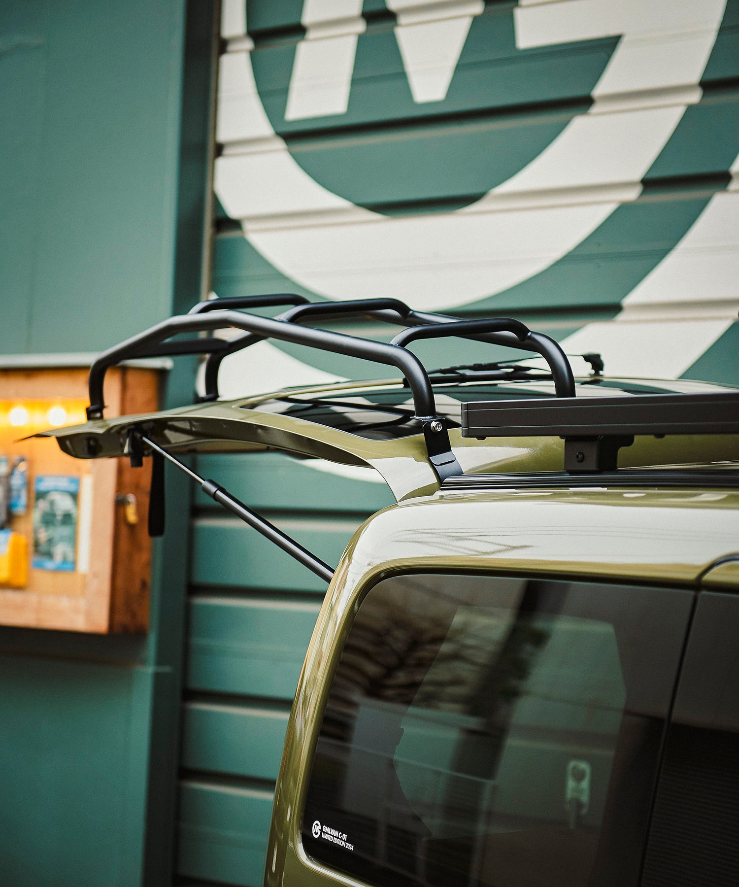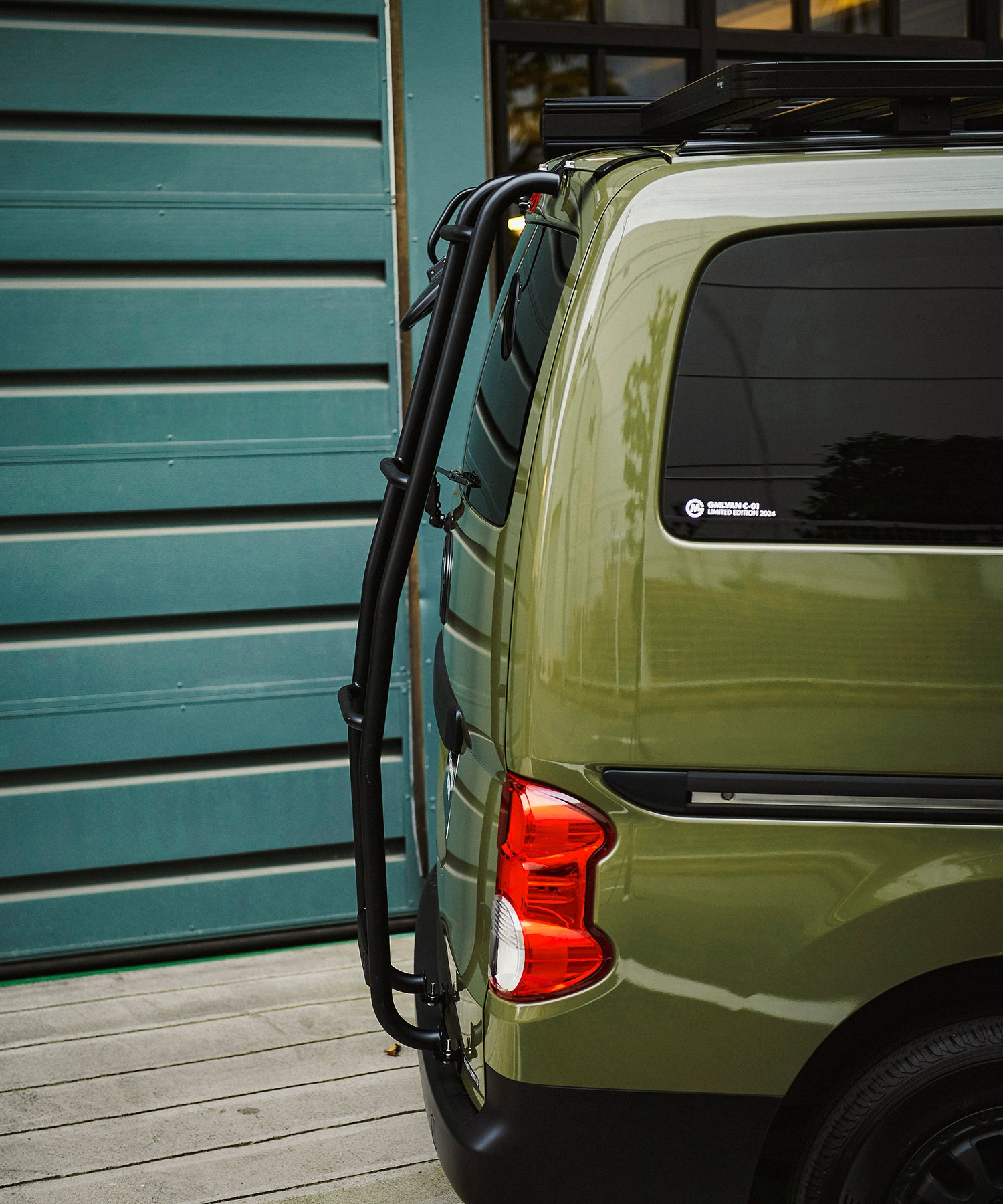 「GORDON MILLER」ロゴが型抜きされたC-01専用のリアラダーです。 ルーフラックやシステムキャリアなど、荷物の積み降ろし作業をスムーズに行え便利です。 表面の塗装は粉体塗装で仕上げる事により触り心地が良くアウトドア感を演出します。