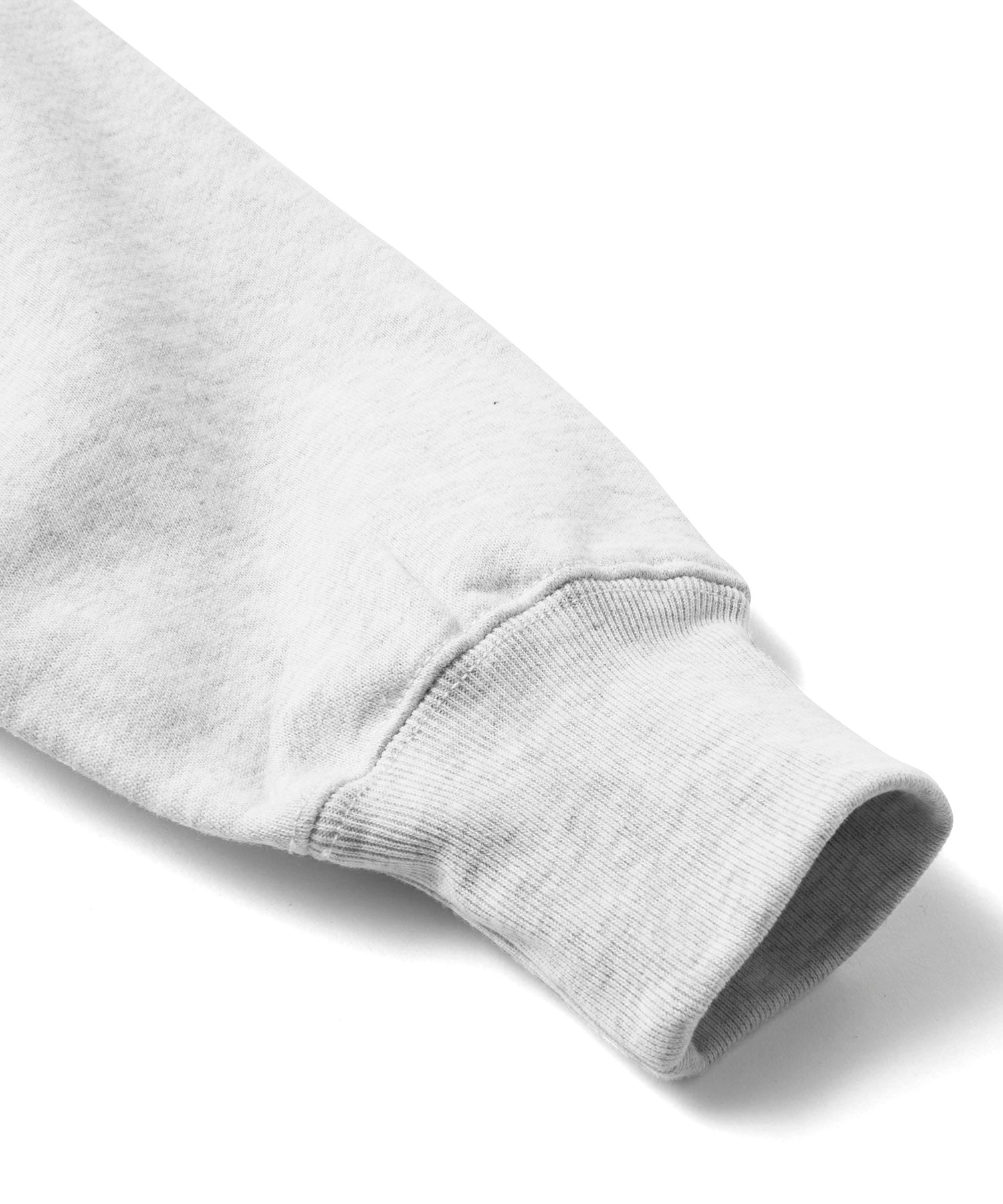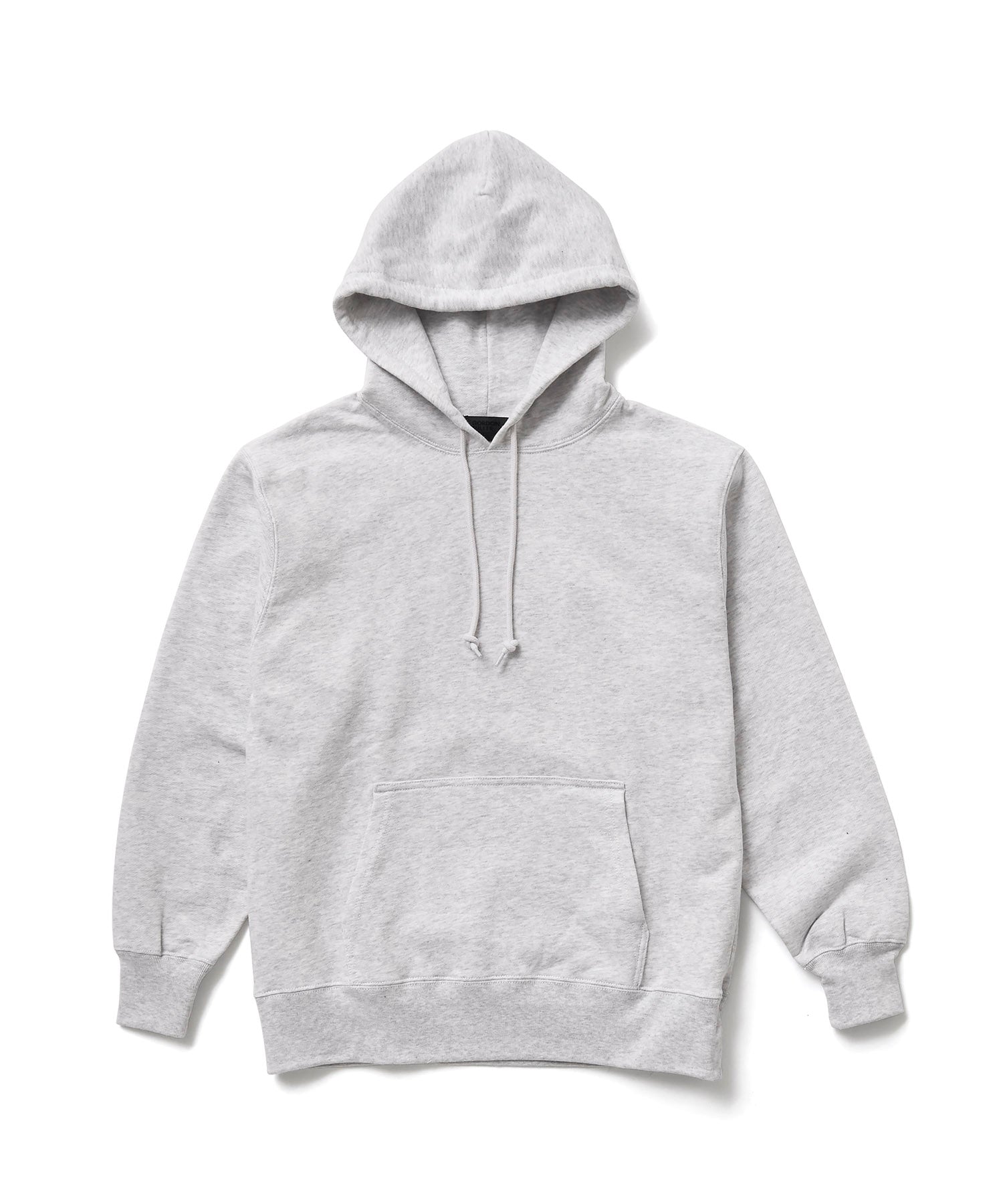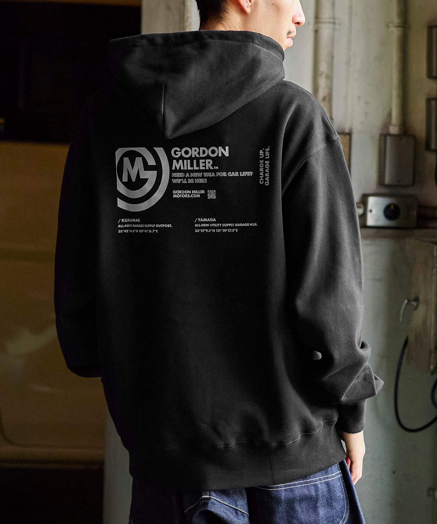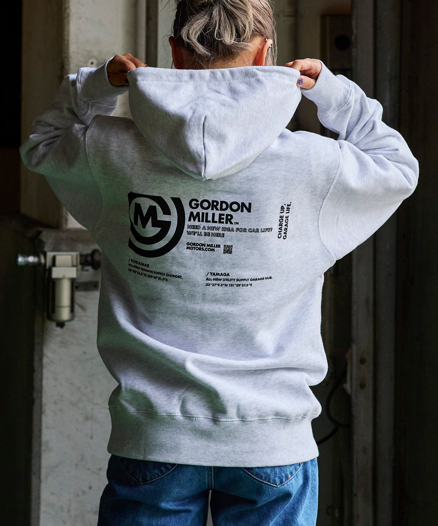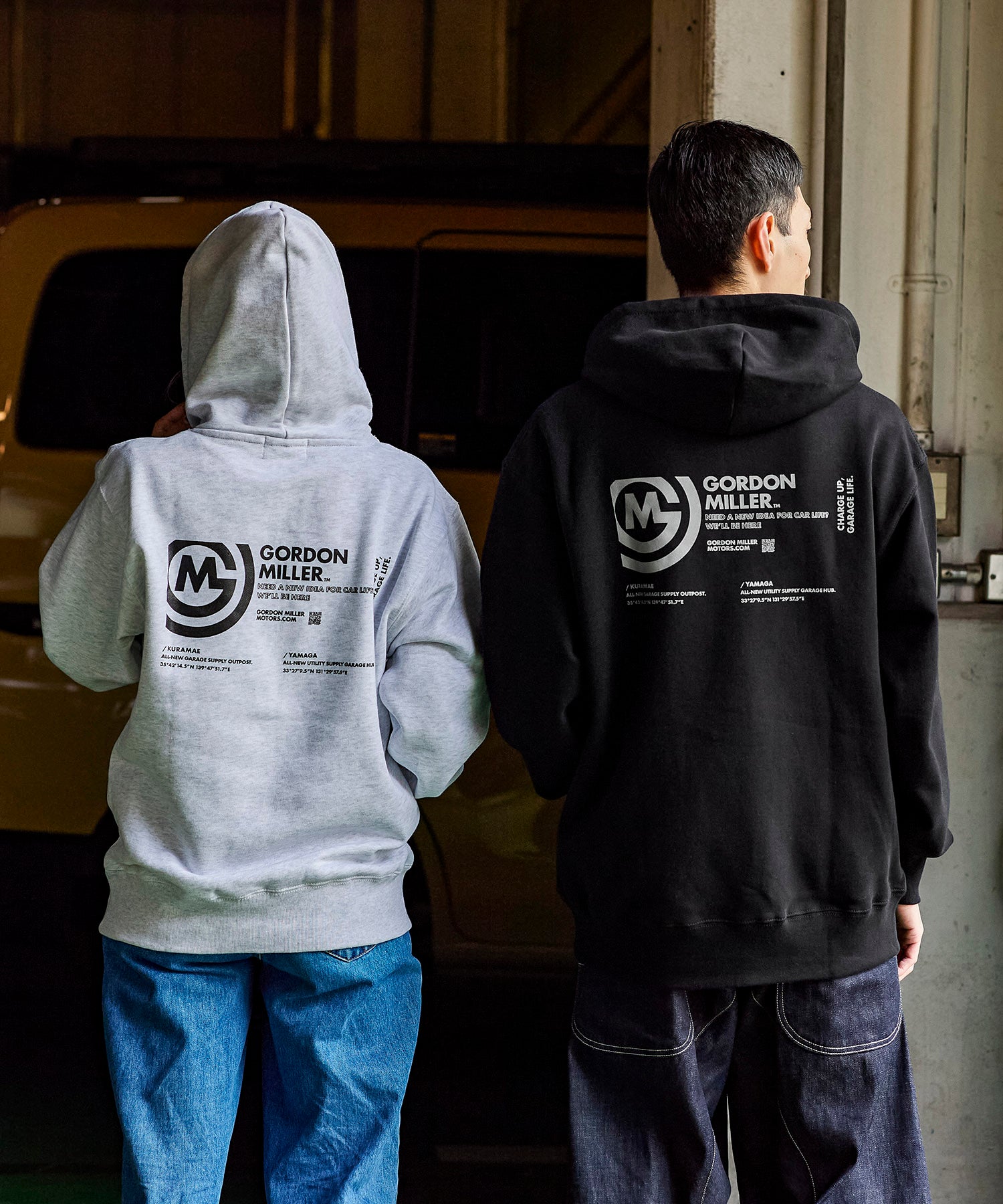GMマークが欠けているデザインが新しいグラフィックのプリントスウェット。コットン100%で秋~春にかけても出番の多いフーディのライトグレーとブラックの2色展開。