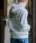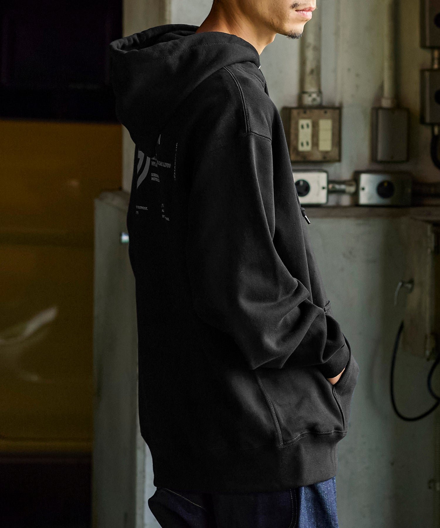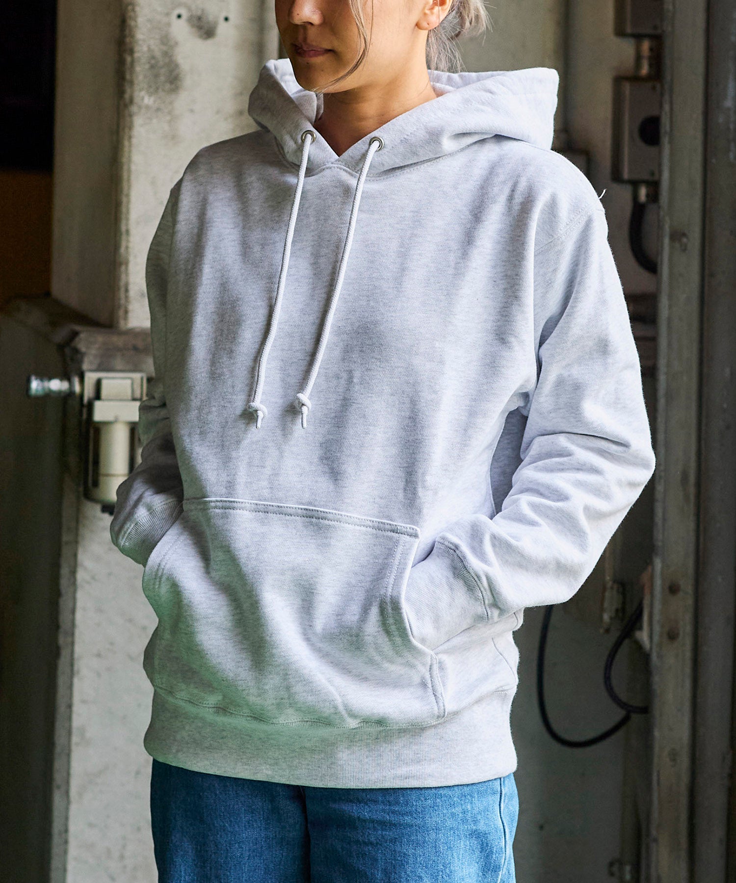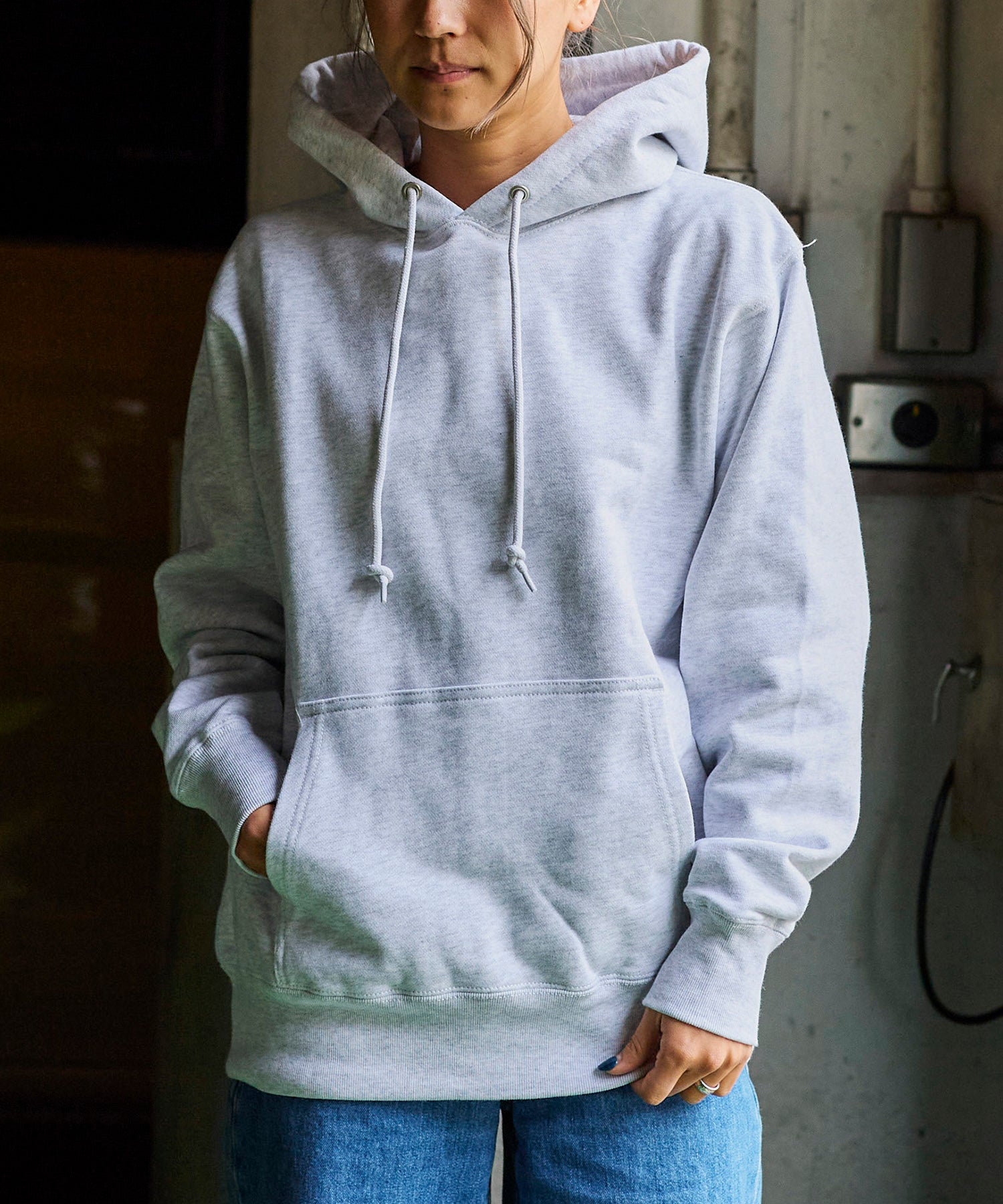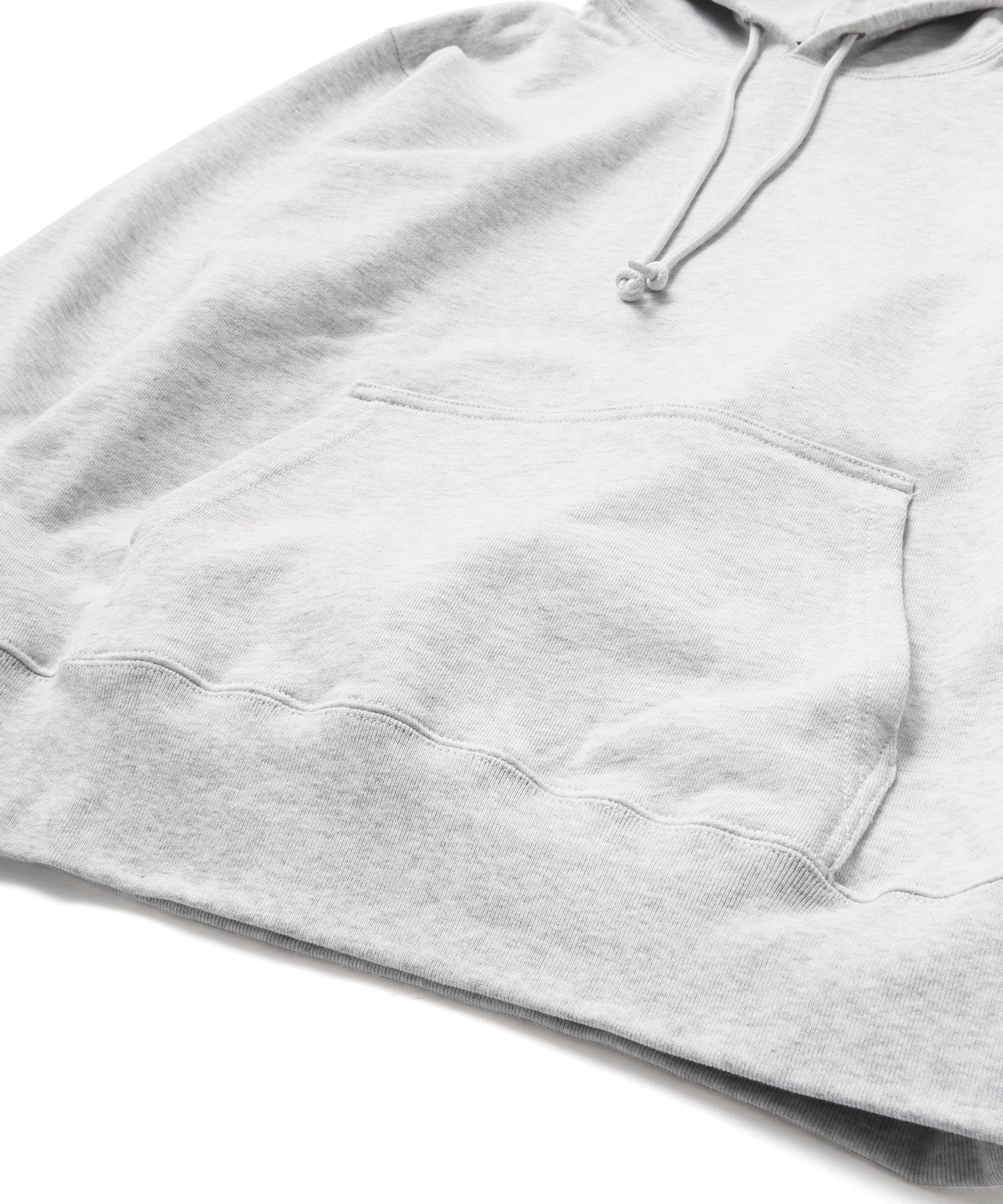 GMマークが欠けているデザインが新しいグラフィックのプリントスウェット。コットン100%で秋~春にかけても出番の多いフーディのライトグレーとブラックの2色展開。