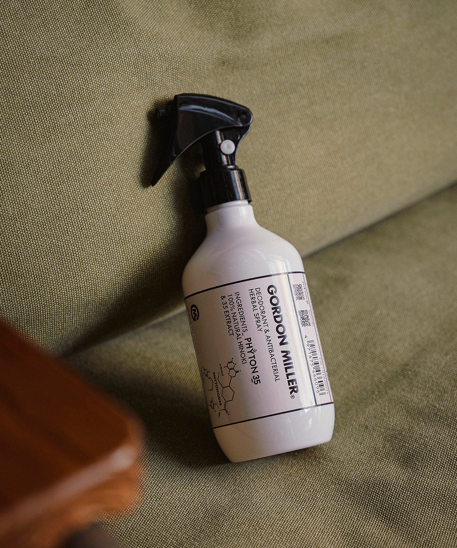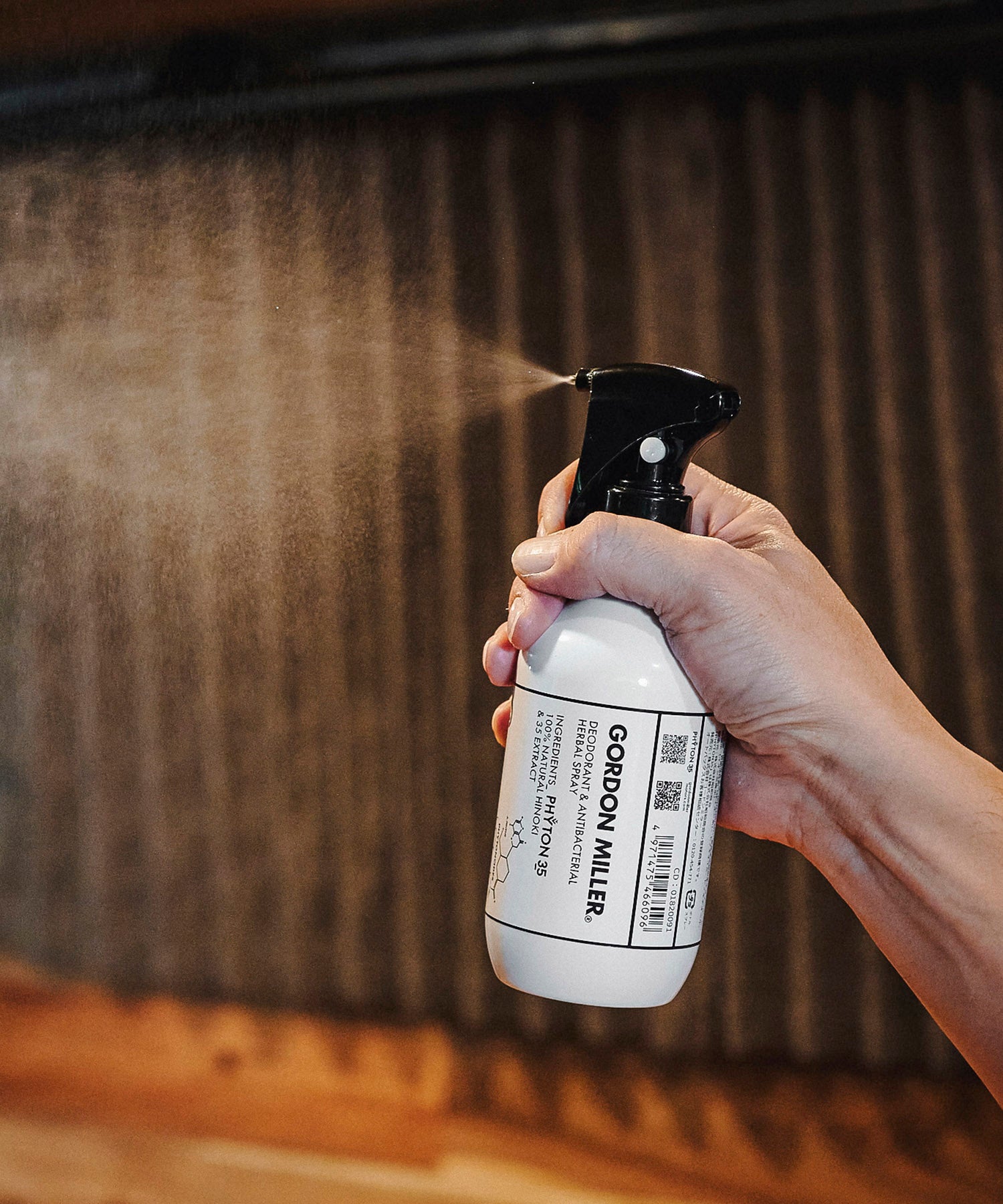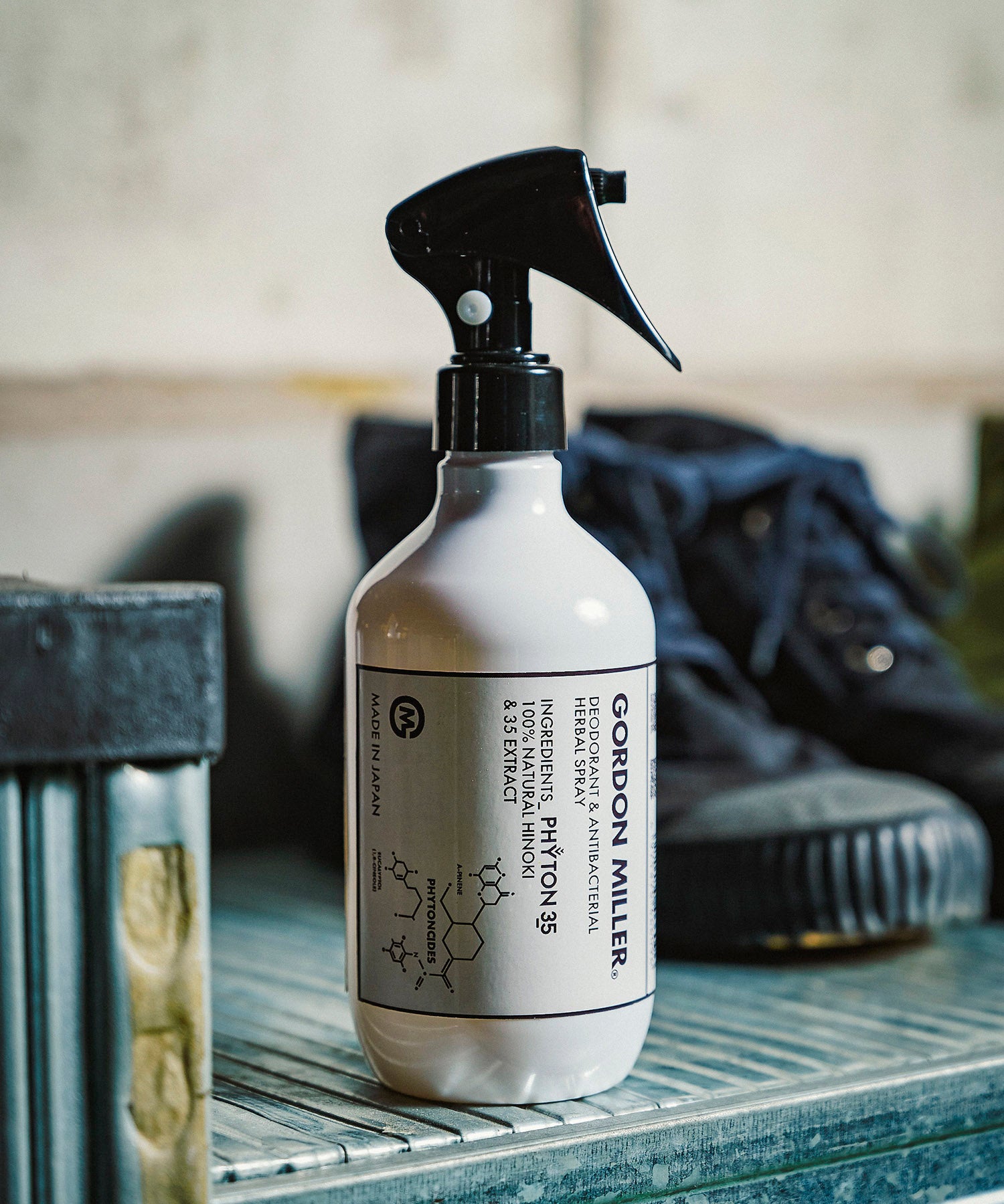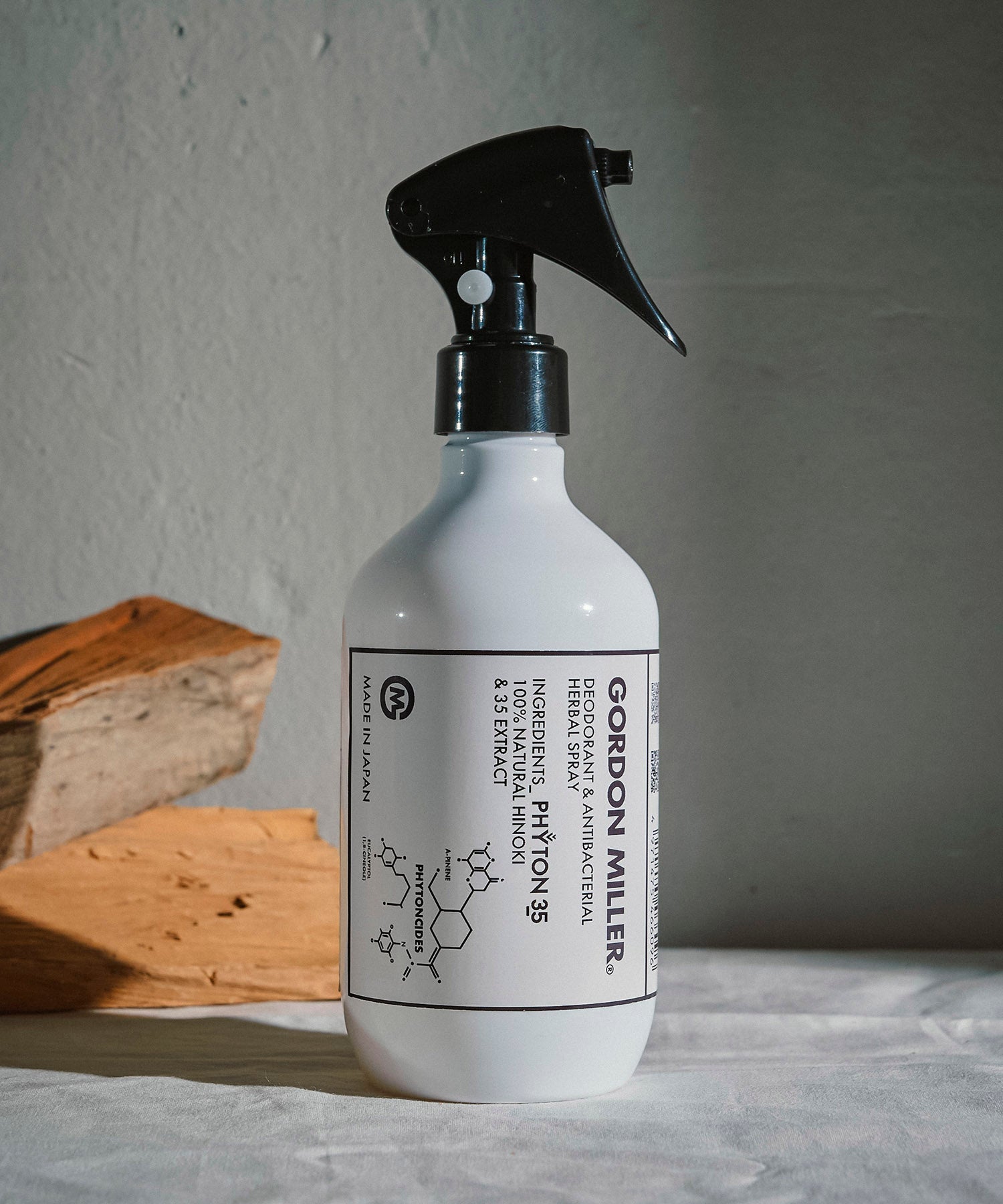 [消臭・抗菌・ハーバルスプレー]ヒノキ成分をはじめとする35種類の天然植物エキス(フィトンチッド成分)を使用し、植物の効果を最大限に引き出す黄金比で調合された消臭剤です。